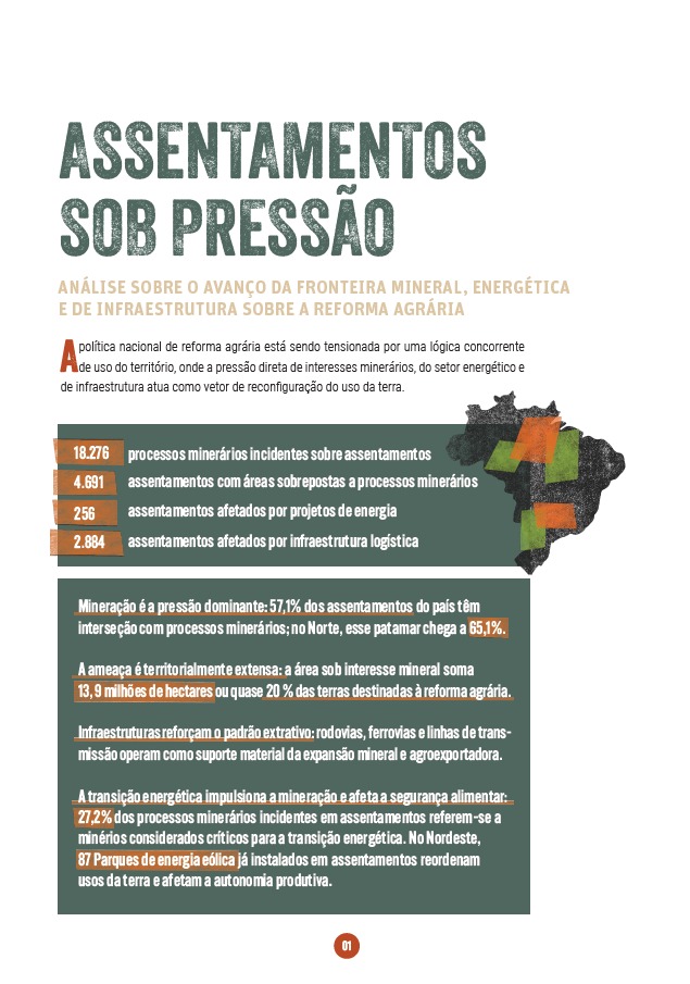 No marco do Abril Vermelho, mês de mobilização em defesa da reforma agrária, a Fundação Rosa Luxemburgo e a FASE divulgam um novo estudo que analisa a pressão de atividades minerárias, energéticas e de infraestrutura sobre assentamentos no Brasil. A publicação integra o estudo “Assentamentos sob pressão: Análise sobre o avanço da fronteira mineral, energética e de infraestrutura sobre a reforma agrária”, que será lançado na íntegra no mês de Maio. O material foi coordenado pela Coalizão Terra é para Plantar e Proteger, composta pelas seguintes organizações: Amazon Watch, Associação Brasileira de Reforma Agrária – ABRA, Associação Regional de Produtores Agroecológicos – ARPA, Comitê em Defesa dos Territórios frente a Mineração – CDTM, Centro de Tecnologia Alternativa do Vale do Guaporé (MT) – CTA, Confederação Nacional dos Trabalhadores Rurais Agricultores e Agricultoras Familiares- CONTAG, cosmopoliticas, Federação das Associações de Moradores do Projeto de Assentamento Agroextrativista da Gleba Lago Grande – FEAGLE, FASE, Movimento pela Soberania Popular na Mineração – MAM, Movimento dos Trabalhadores e Trabalhadoras Sem Terra – MST, Movimento Xingu Vivo para Sempre, Núcleo Política, Economia, Mineração, Ambiente e Sociedade (UFJF, UFRJ, UFF, UFV, UEG), Observatório de Conflitos da Mineração, Rede Brasileira de Justiça Ambiental – RBJA.