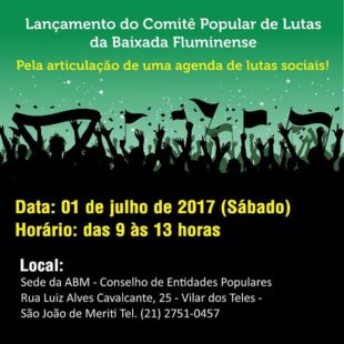 Iniciativa visa a articulação das agendas e das lutas sociais: unidade nos objetivos e tolerância nas táticas. Venha participar do lançamento do Comitê de Lutas da Baixada Fluminense e da carta compromisso do Comitê Popular de Lutas do Estado do Rio de Janeiro