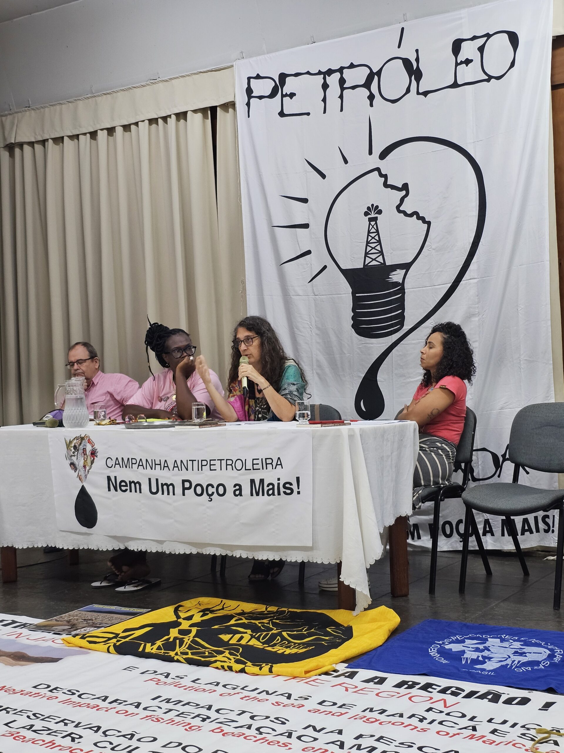 Ao lado de Letícia, o seminário contou ainda com uma mesa de conjuntura política e ambiental sobre os dois anos de mandato do presidente Luis Inácio da Silva, com a presença de Selma Selma Dealdina, da Coordenação Nacional de Articulação das Comunidades Negras Rurais Quilombolas (CONAQ), Camila Valadão, deputada estadual pelo PSOL, Marcos Pedlowski professor da Universidade Estadual do Norte Fluminense (UENF). Os debates reforçaram uma crítica à expansão petroleira do governo Lula e a emergência de deixar o petróleo no subsolo, pela proteção dos territórios tradicionais e a transição do sistema capitalista.