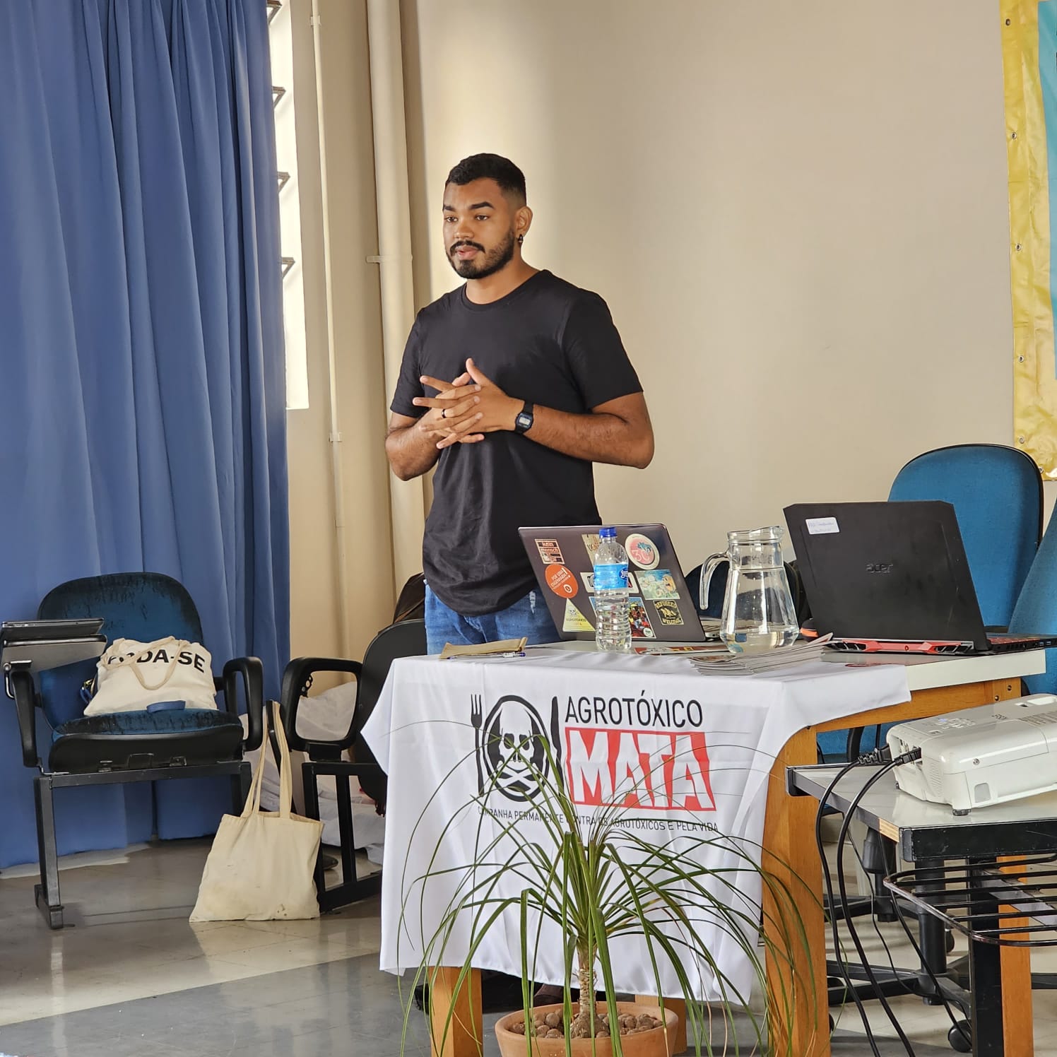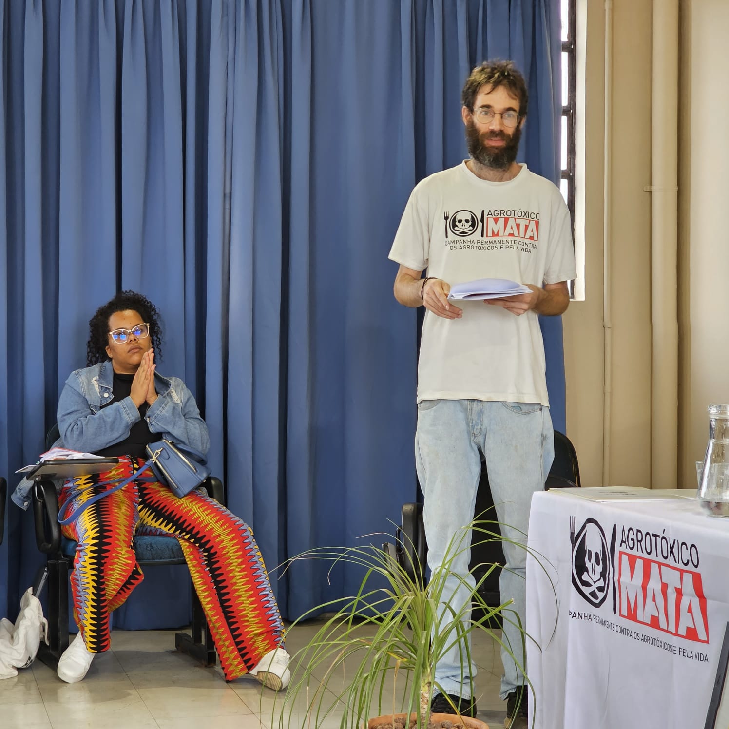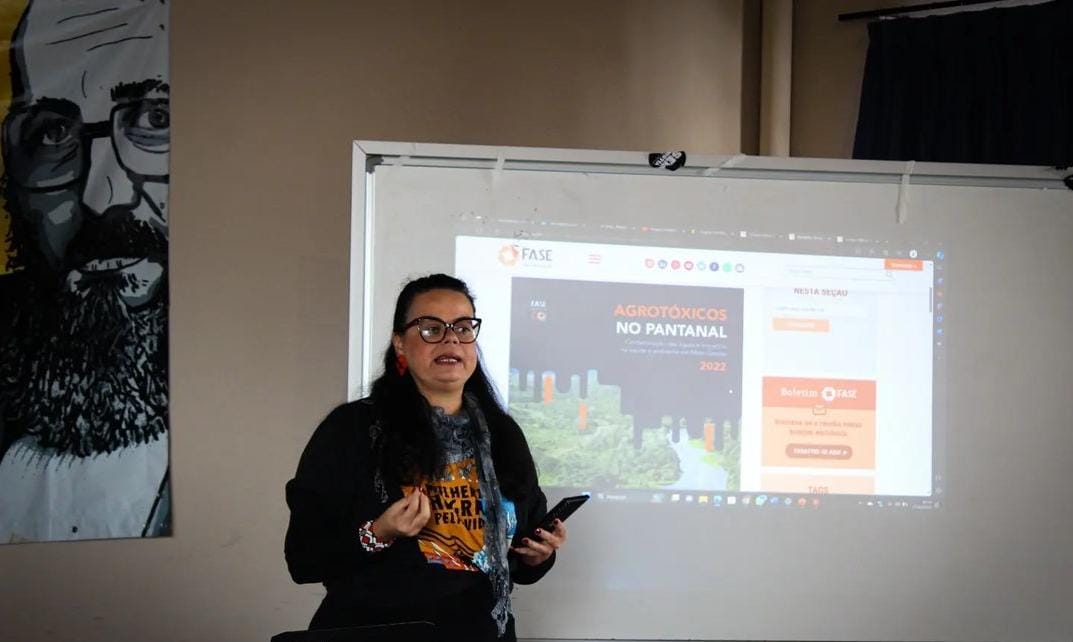 A comunicadora e o educador da FASE presentes no evento participaram de batalhas de ideias e apresentações de trabalhos de campo e no dia a dia de divulgação da pauta dos agrotóxicos nas redes sociais e nas mídias. E apresentaram as mais recentes pesquisas e publicações da FASE sobre o tema, como “O Agro não é verde” e “Relatório Técnico Agrotóxicos no Pantanal”.