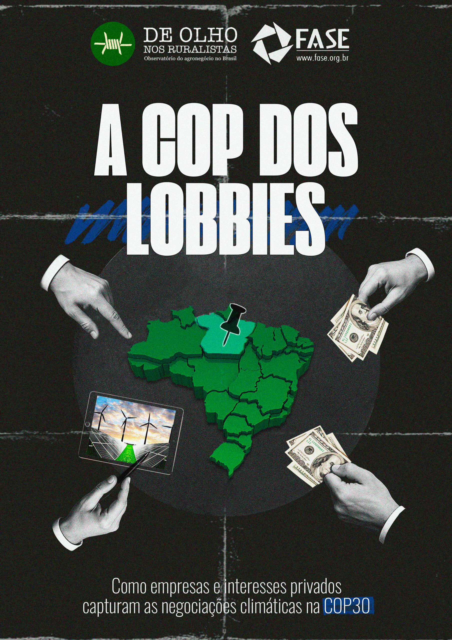 O observatório De Olho nos Ruralistas e a FASE – Solidariedade e Educação lançam, nesta segunda-feira (10), o relatório “A COP dos Lobbies”. O estudo mapeia a influência crescente de grandes corporações brasileiras e de multinacionais nas negociações e nos espaços de deliberação da 30ª Conferência das Nações Unidas sobre Mudança do Clima (COP30), que será realizada em Belém (PA).