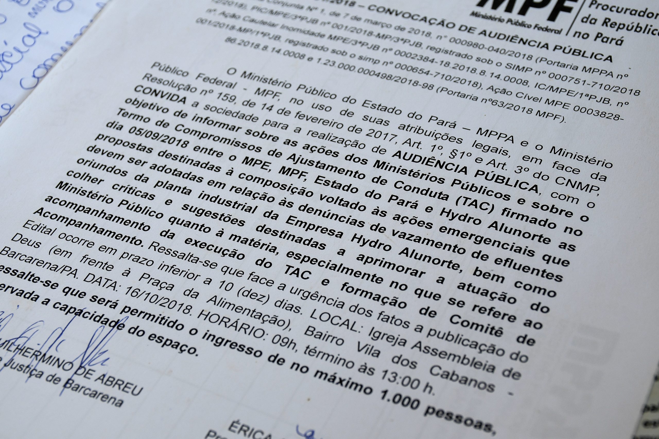 - Documentos do MP e MPF convocando para mais uma assembleia de decisões acerca dos afetados.