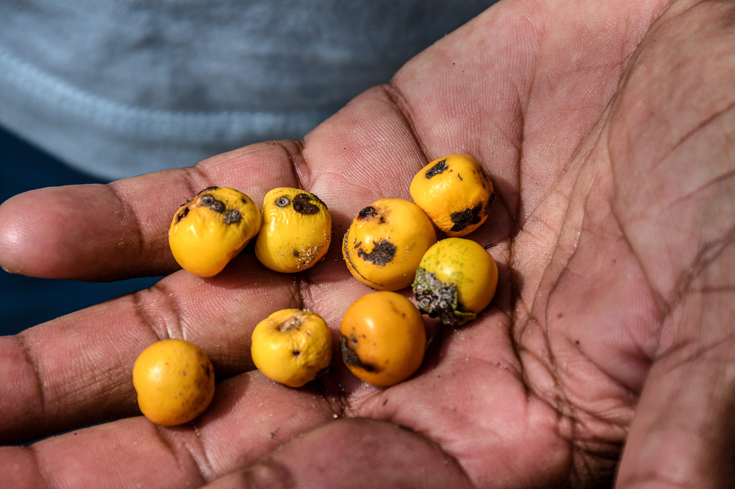 - O açaí cai verde da palmeira e com um odor ruim.