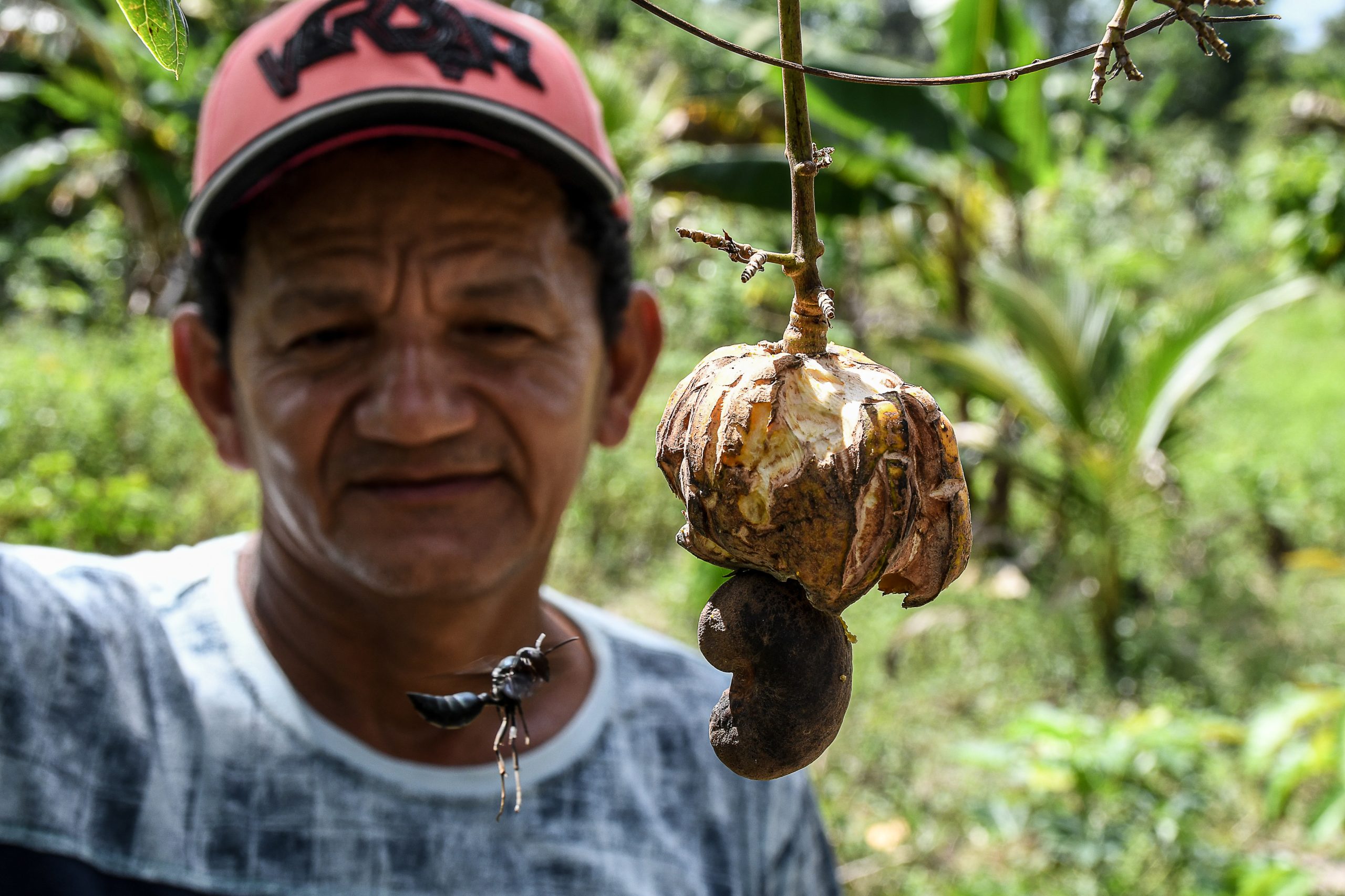 - Seu Jorge, pai de Rebeca e marido de Damiana mostra o caju morto e murcho
