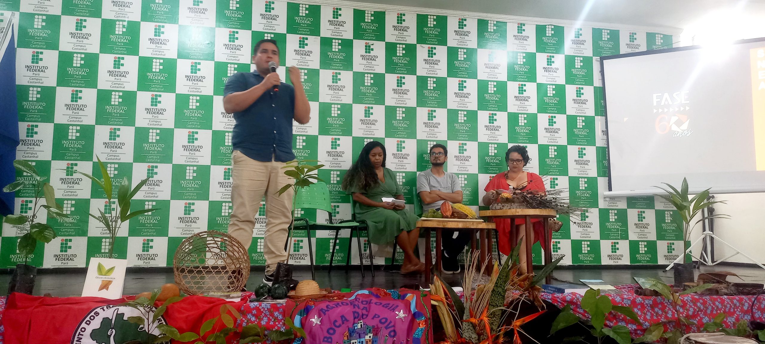 O educador popular do programa regional FASE Amazônia, Samis Vieira, participou da mesa redonda “Territorializar a Agroecologia para Agroecologizar a Educação” para o diálogo com diferentes grupos, redes e movimentos sociais sobre a educação formal em agroecologia e falou sobre a importância do trabalho com educação popular na Amazônia ressaltando a importância da agroecologia como ferramenta de resistência e reprodução social das comunidades e povos tradicionais articulada na luta pela defesa dos territórios e do bem viver. “Fazer agroecologia na Amazônia é um processo além dos aspectos produtivos, ou seja, precisa levar em consideração as particularidades amazônicas e seus diversos atores sociais”, pontuou.
