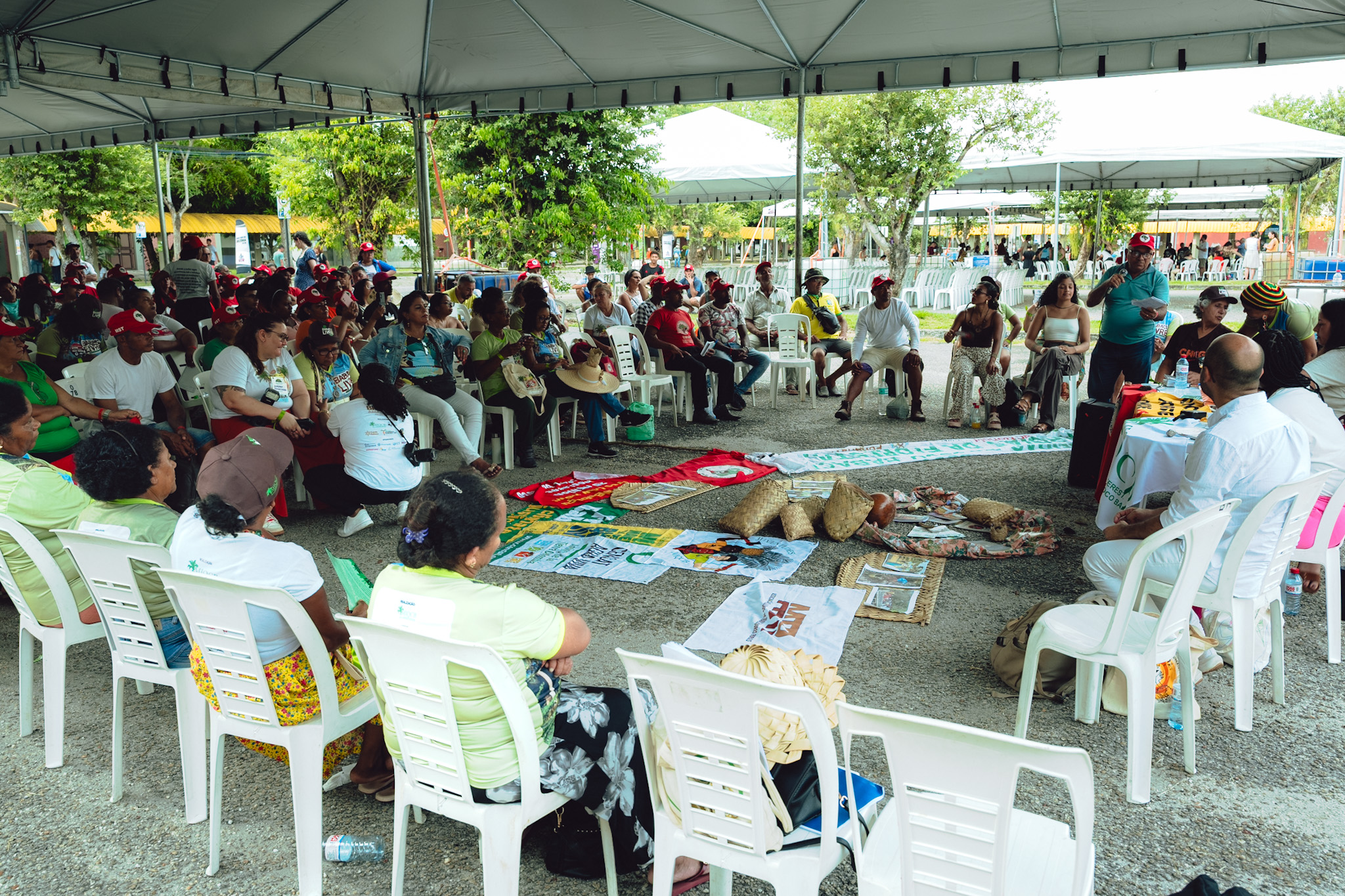 Com o título “A Terra também é nossa”, a Fase Amazônia, o Movimento dos Trabalhadores Rurais Sem Terra (MST) e o Movimento Interestadual das Quebradeiras de Coco Babaçu (Miqcb), realizaram na tarde do dia 14 de outubro uma roda de conversa “enlaçada” na Cúpula dos Povos. Discutir a destinação de terras e gestão comunitária da terra pelos próprios trabalhadores e trabalhadoras foi o ponto central do debate que reuniu representantes de comunidades tradicionais, camponesas e camponesas do Brasil, além de convidadas da Colômbia, na Universidade Federal do Pará.
