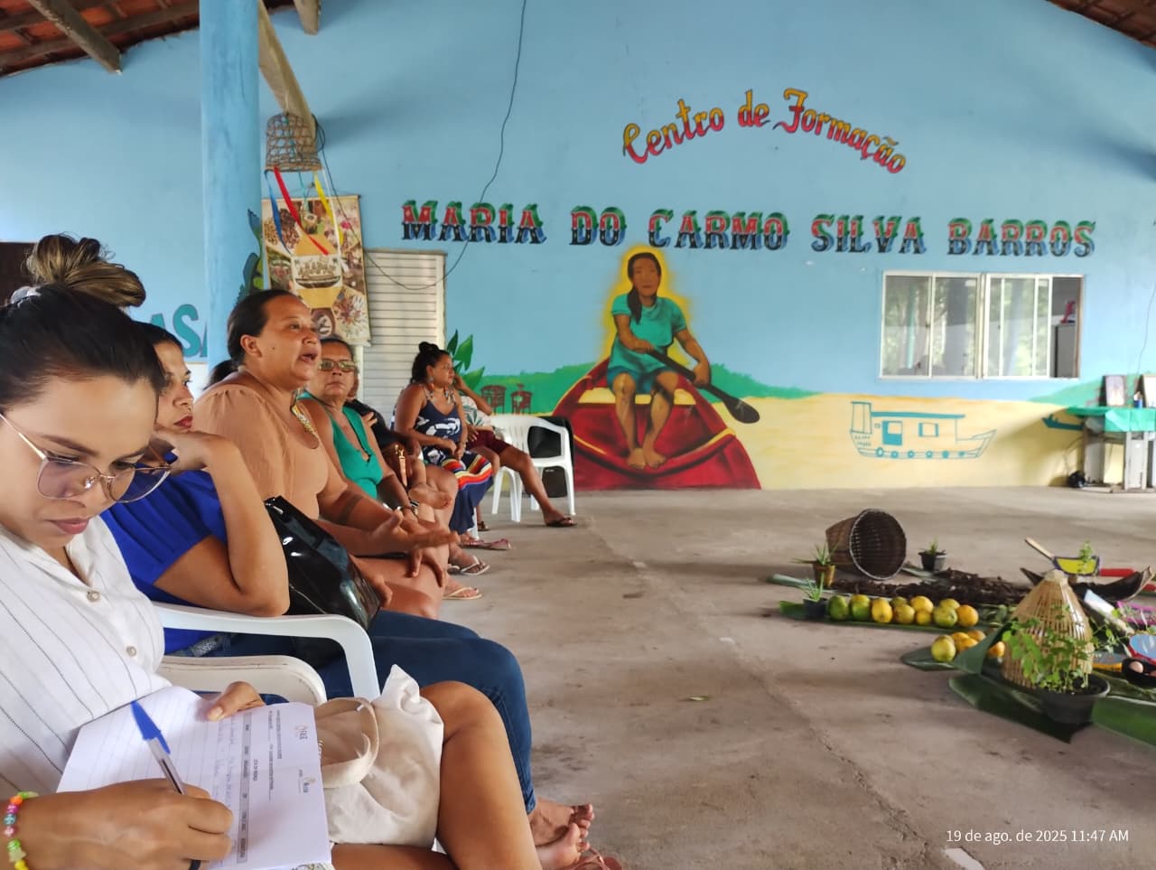 No último dia 19 de agosto, mulheres da Comunidade Agroextrativista do Pirocaba, em Abaetetuba (PA), participaram de uma roda de conversa que teve como propósito fortalecer a escuta ativa e aproximar instituições públicas e parceiras da realidade local. A atividade foi realizada pelo Ministério Público do Estado do Pará (MPPA), por meio do Núcleo Mulher e do Núcleo de Promoção da Igualdade Étnico-Racial (NIERAC), em parceria com a Universidade Federal do Pará (UFPA) e o projeto Ciência e Vozes da Amazônia. Também contou com o apoio da FASE Amazônia e da Associação dos Agroextrativistas, Pescadores e Artesãos do Pirocaba (ASAPAP), fundamentais para viabilizar o encontro e fortalecer os espaços de diálogo comunitário.