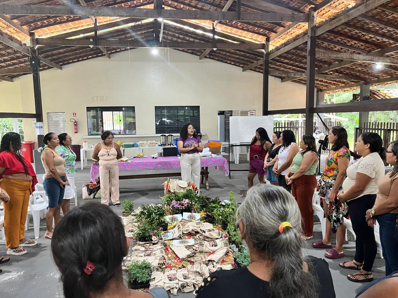 Durante a atividade, cerca de 40 mulheres se reuniram em um espaço de troca de saberes, formação e fortalecimento coletivo, dialogando sobre plantas medicinais, economia feminista e o uso da Caderneta Agroecológica como instrumento de gestão da produção e organização da produtiva. Ao longo da oficina, foram partilhados os resultados dos quintais agroecológicos, o aumento da produção, a diversificação alimentar e a ampliação das estratégias de geração de renda e sustento das famílias.