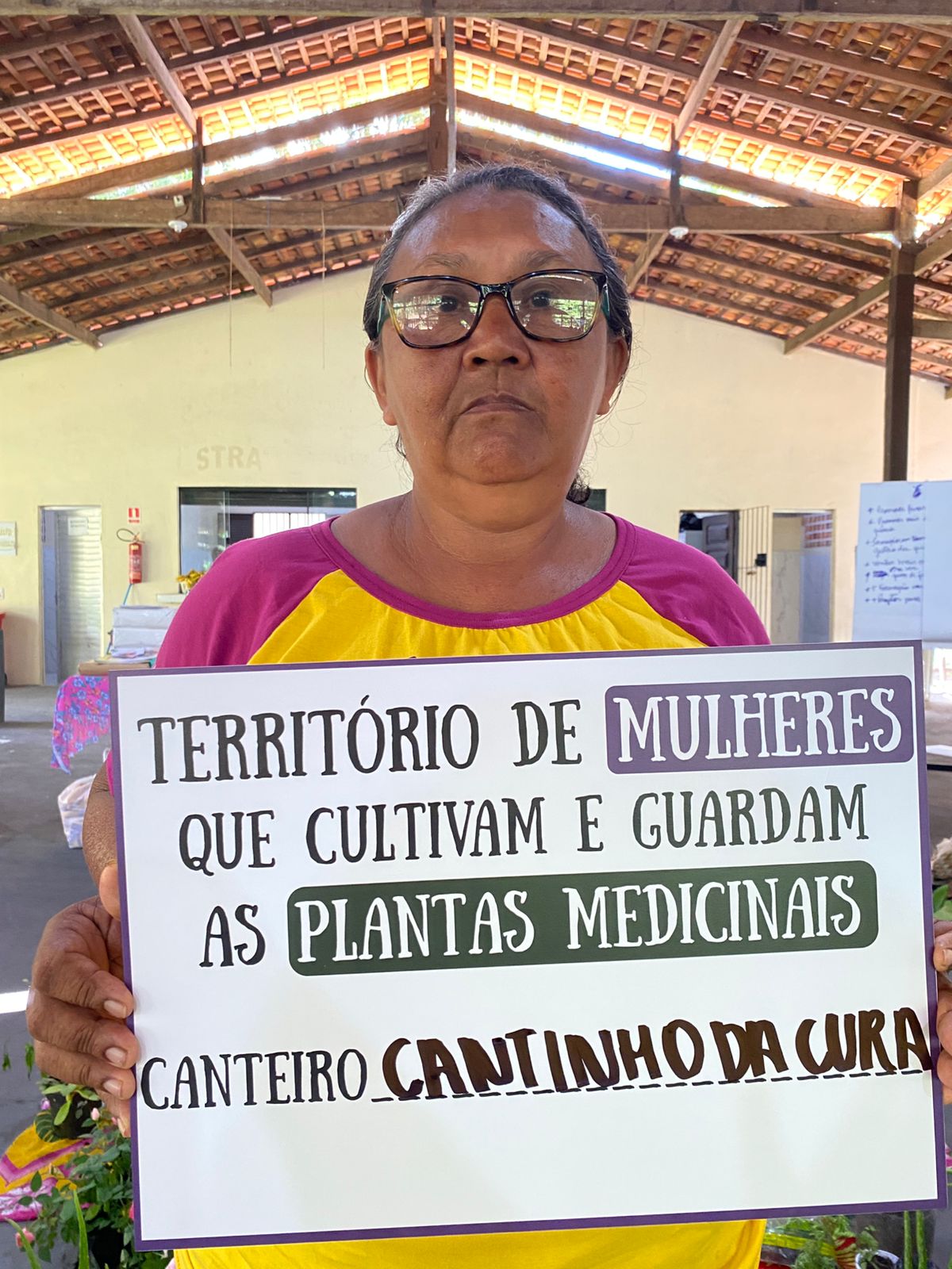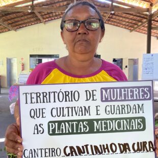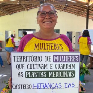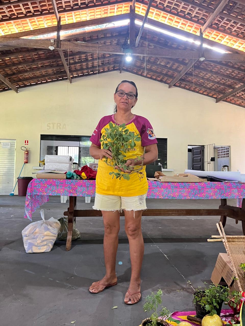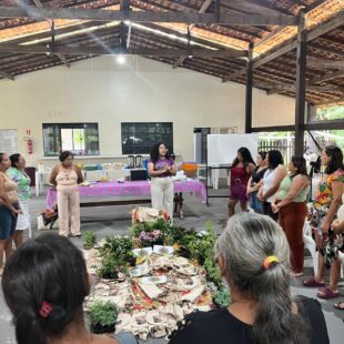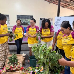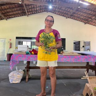 A oficina também foi marcada pela partilha de saberes e práticas sobre plantas, árvores e raízes medicinais, reafirmando o papel das mulheres na produção de saúde e no cuidado com a vida. As participantes trocaram mudas e saberes, fortalecendo a continuidade dos conhecimentos tradicionais e sua transmissão entre gerações.