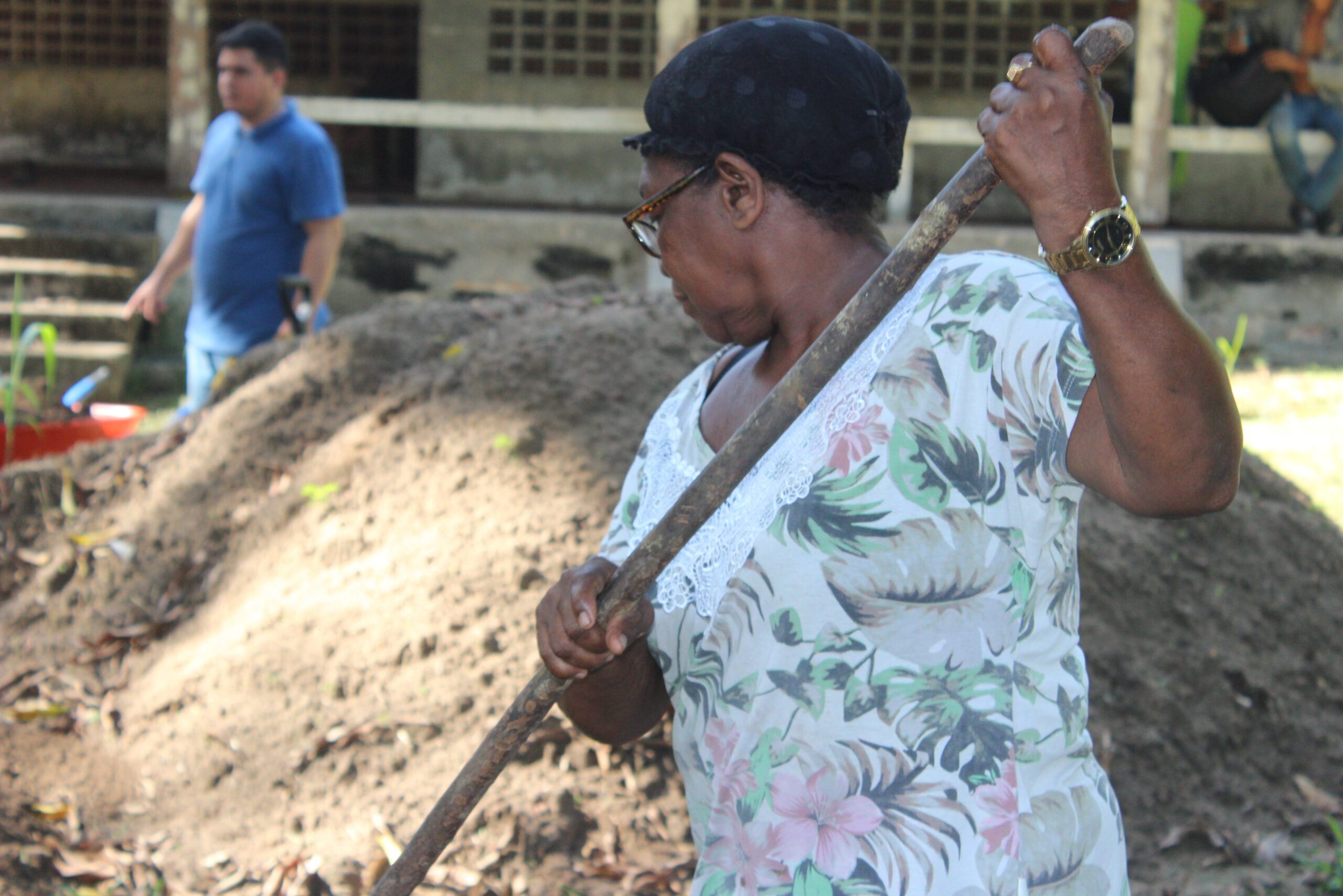 Durante a oficina foram abordadas práticas agroecológicas relacionadas às diferentes formas de substrato a partir da reutilização de produtos da própria comunidade (terra preta, esterco de gado, esterco de galinha, paú da mata, cinza, pó de serra e areia) bem como as diversas formas de preparo, trazendo a partilha de práticas desenvolvida pelas famílias como: I) Substrato 01 – 03 baldes de terra e 01 balde de esterco de gado, II) 03 balde de terra e 0,5 balde de esterco de galinha, III) 03 balde de terra e 01 balde de paú da mata.