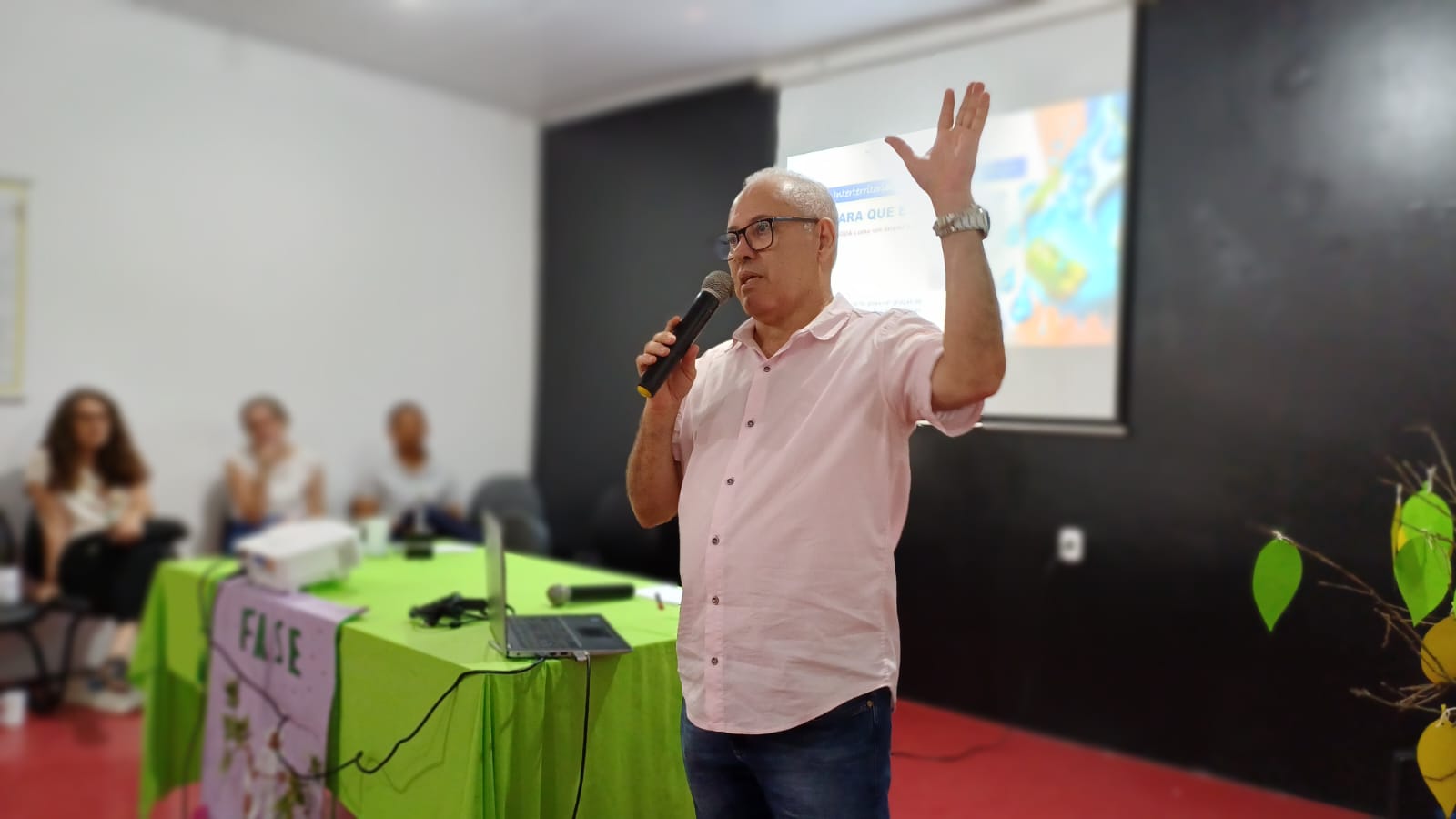 Na terça-feira (26/03), a FASE Bahia realizou o Seminário Interterritorial sobre Água e Preservação do Meio Ambiente, para agricultores e agricultoras dos territórios Vale do Jiquiriçá e Baixo Sul baiano, com as presenças de Julimar Ferreira, promotor de Justiça do Ministério Público do Estado da Bahia, da professora Adriana Conceição, representando a Rede SOS Rio Jiquiriçá e André Azevedo, engenheiro Ambiental do município de Mutuípe.