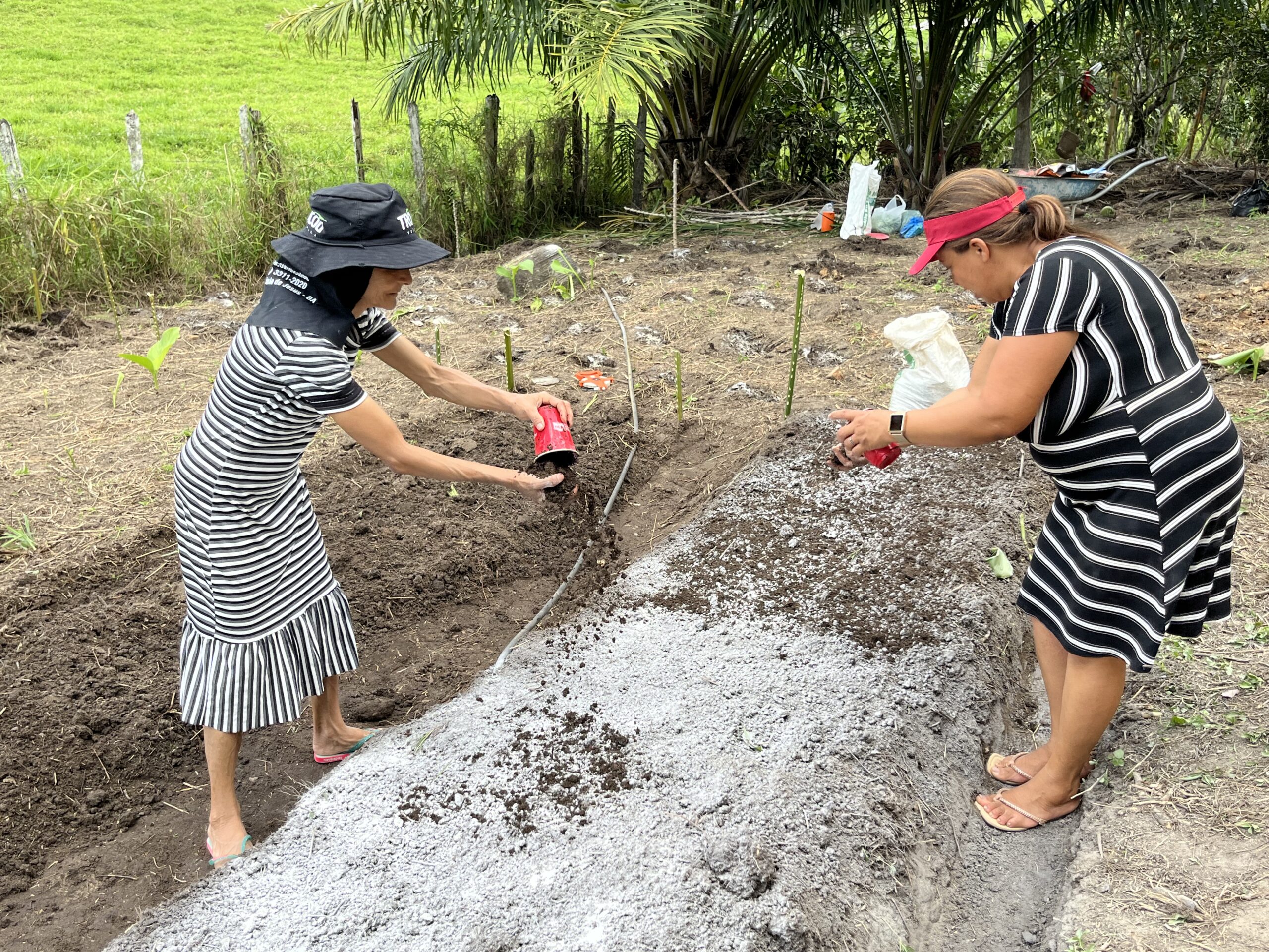 A capacitação ocorreu na propriedade do agricultor Reginaldo de Sousa, que recebe assessoria técnica da FASE por meio do projeto ATER Biomas. A atividade contou com a presença de outras famílias agricultoras da região, fortalecendo o senso de coletividade e a troca de saberes.