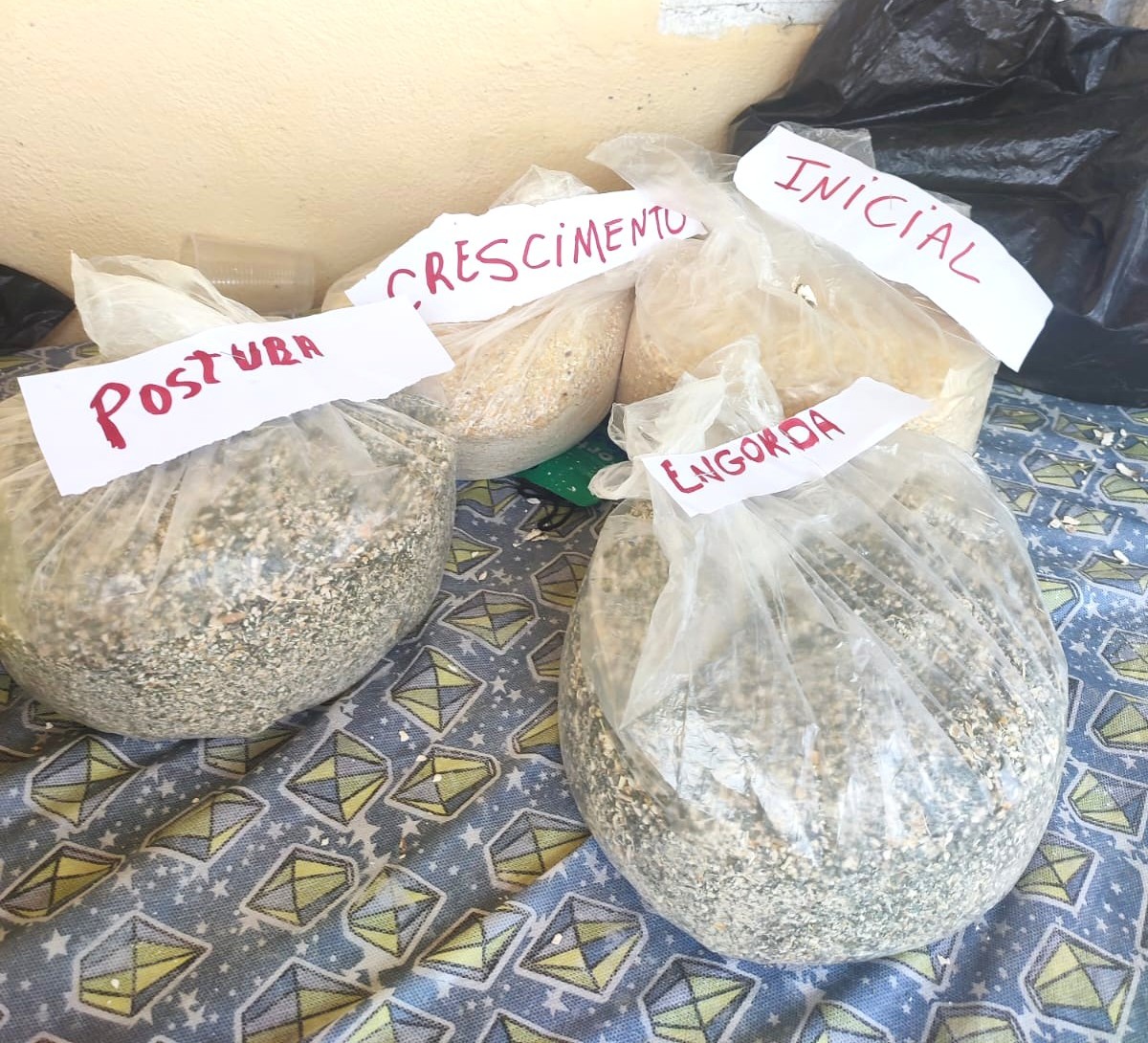 Durante a atividade, os participantes tiveram acesso ao folheto com orientações sobre alimentos que fornecem energia, proteínas, vitaminas e minerais, essenciais para a produção de vários tipos de ração de menor custo, quantidade de água suficiente e de boa qualidade. Em grupos, eles produziram rações de reprodução, postura, crescimento e engorda, a partir do farelo de soja, farelo de trigo, milho, folhas de leguminosas, calcário dolomítico, cascas e crueira de mandioca. Os agricultores e agricultoras trocaram experiências, refletiram sobre as práticas e receberam algumas orientações. Ao final, foi realizada uma avaliação coletiva, onde os participantes puderam expressar o que acharam da atividade e também da maneira que foi conduzida.