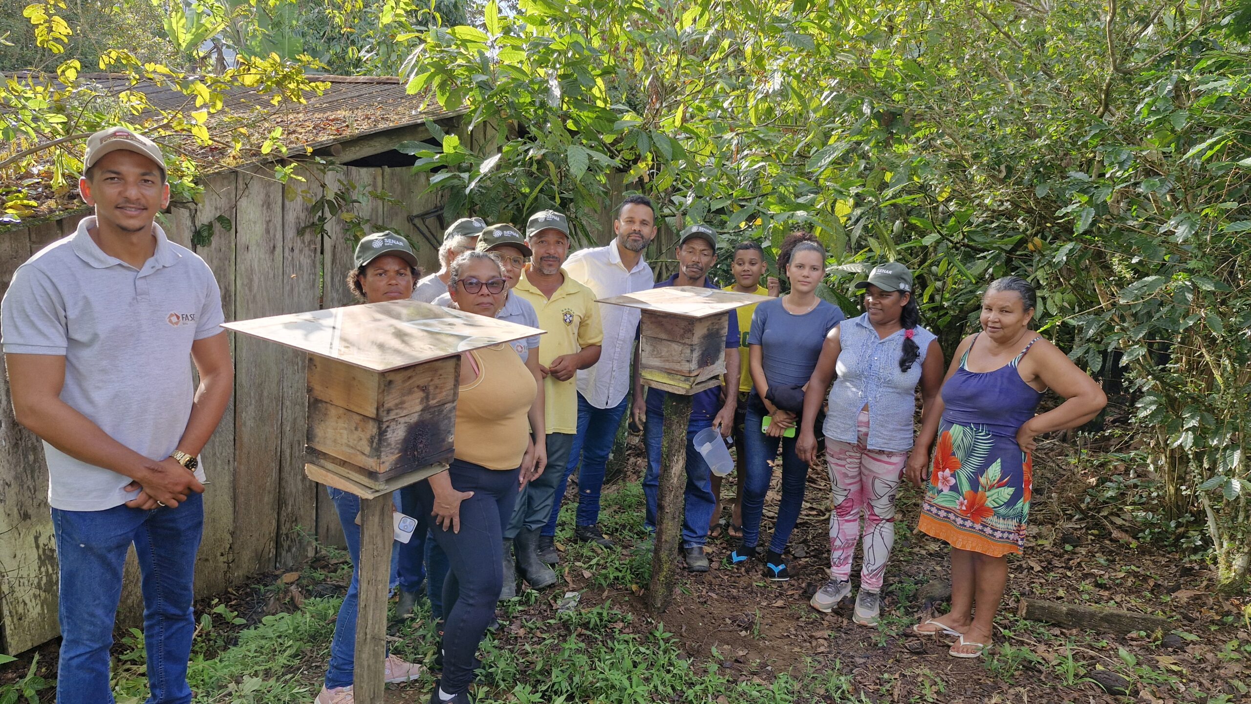 As abelhas trabalham arduamente, não apenas para produzir um mel precioso, mas também para garantir a reprodução das flores, frutos e plantas que compõem a base da vida em nosso planeta. A meliponicultura é uma prática capaz de unir a preservação ambiental com a oportunidade de gerar renda no campo. Os agricultores e agricultoras da comunidade da Água Vermelha, situada no município de Mutuípe, território Vale do Jiquiriçá, acompanhados pela FASE Bahia através do projeto ATER Biomas, solicitaram uma oficina para aprender sobre a criação de abelhas e beneficiamento do mel. O curso foi promovido pela FASE Bahia, em parceria com o Instrutor do (Serviço Nacional de Aprendizagem Rural – SENAR), Welton Clarindo, Gestor Ambiental, Apicultor e Meliponicultor, durante os dias 11 a 13 de agosto.