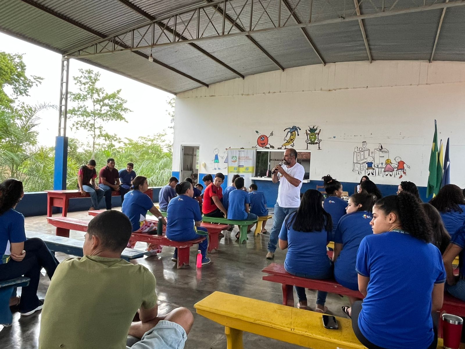 A oficina incluiu alunos do 6º ano do Ensino Fundamental ao 3º ano do Ensino Médio, além dos professores, e teve como objetivo debater a importância da agroecologia na produção do próprio alimento (dentro da perspectiva de segurança e soberania alimentar) e a diferença entre o modelo produtivo-predatório do agronegócio e os sistemas agroflorestais (SAFS), que vêm sendo implementados em propriedades pertencentes à comunidade das Botas. Durante as palestras, alunos e professores foram provocados a refletir sobre a contradição dos modelos encontrados no território: enquanto o modelo dominante visa ao lucro, sustentando-se em grandes extensões de terra desmatada e na monocultura, o outro modelo (ancestral, mas ainda assim fragilizado) objetiva a subsistência das famílias, a preservação da natureza e a conservação do solo.