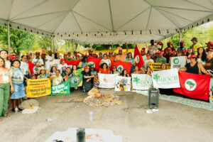 Letícia Tura, diretora executiva da FASE, e Jaqueline Felipe, educadora popular da FASE Amazônia, estiveram junto com redes agroecológicas, movimentos sociais e organizações sindicais, como a ANA, MTST, MST, MCP e MAB, que na construção dessa iniciativa.