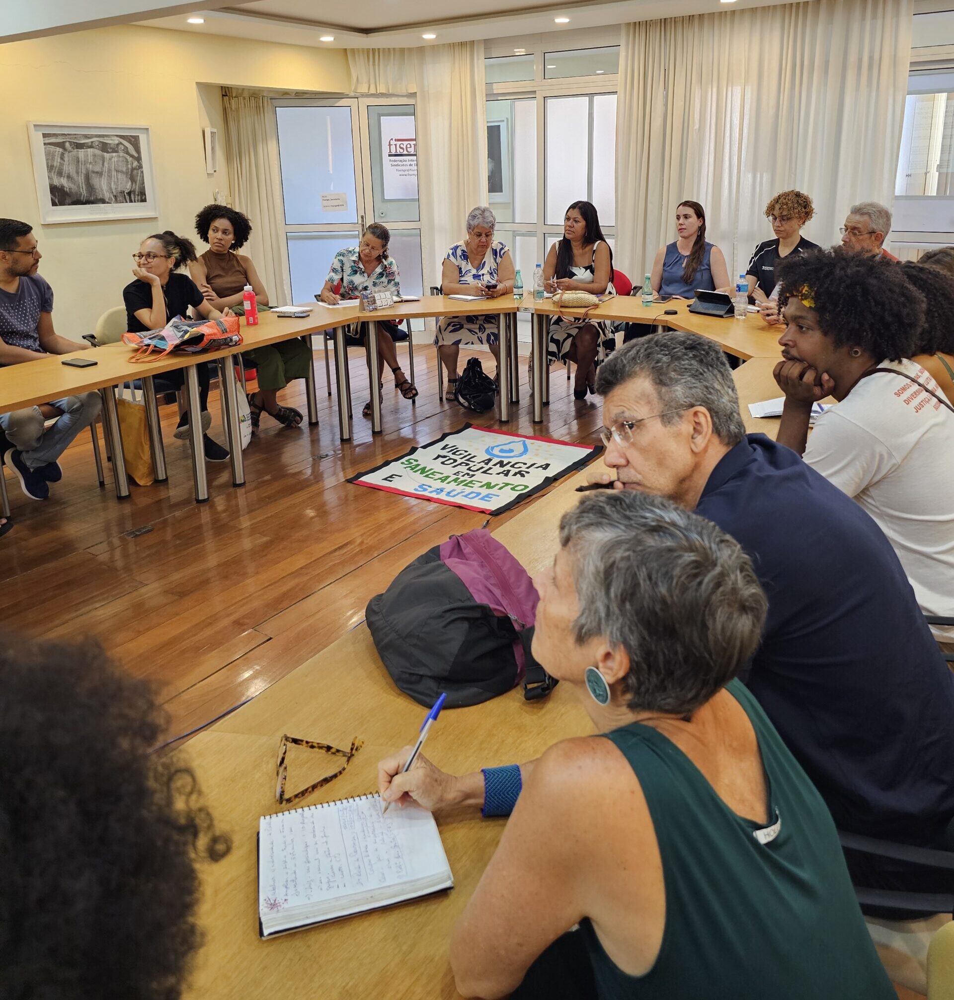 Na quarta-feira, 2 de abril, a Rede de Vigilância Popular em Saneamento e Saúde do Rio de Janeiro, da qual a FASE RJ faz parte, realizou uma oficina para debater as conexões entre clima e água. O encontro foi realizado na sede do Sindicato dos Engenheiros (SENGE), localizada no centro da cidade do Rio de Janeiro, em parceria com o Fórum de Mudanças Climáticas e Justiça Socioambiental (FMCJS/RJ), o Movimento dos Atingidos por Barragens (MAB) e o Laboratório de Estudos de Águas Urbanas (LEAU/UFRJ).