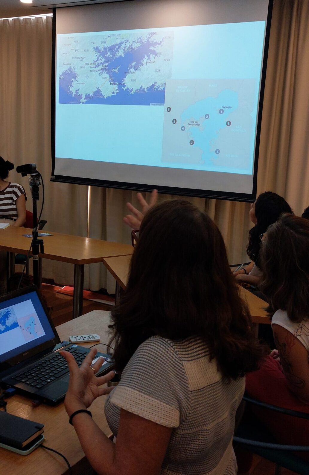 O evento iniciou com uma mesa de apresentação formada por Ana Britto, professora da Faculdade de Arquitetura e Urbanismo (FAU/UFRJ) e coordenadora do Laboratório de Estudos de Águas Urbanas (LEAU/UFRJ), Roberto Oliveira, mestre em História e coordenador do Movimento dos Atingidos por Barragens (MAB), e Maiana Maia, do Núcleo de Políticas e Alternativas (NuPA) da FASE. As convidadas e o convidado fizeram falas introdutórias, trazendo dados, reflexões e provocações que foram, posteriormente, discutidos pelos demais presentes.