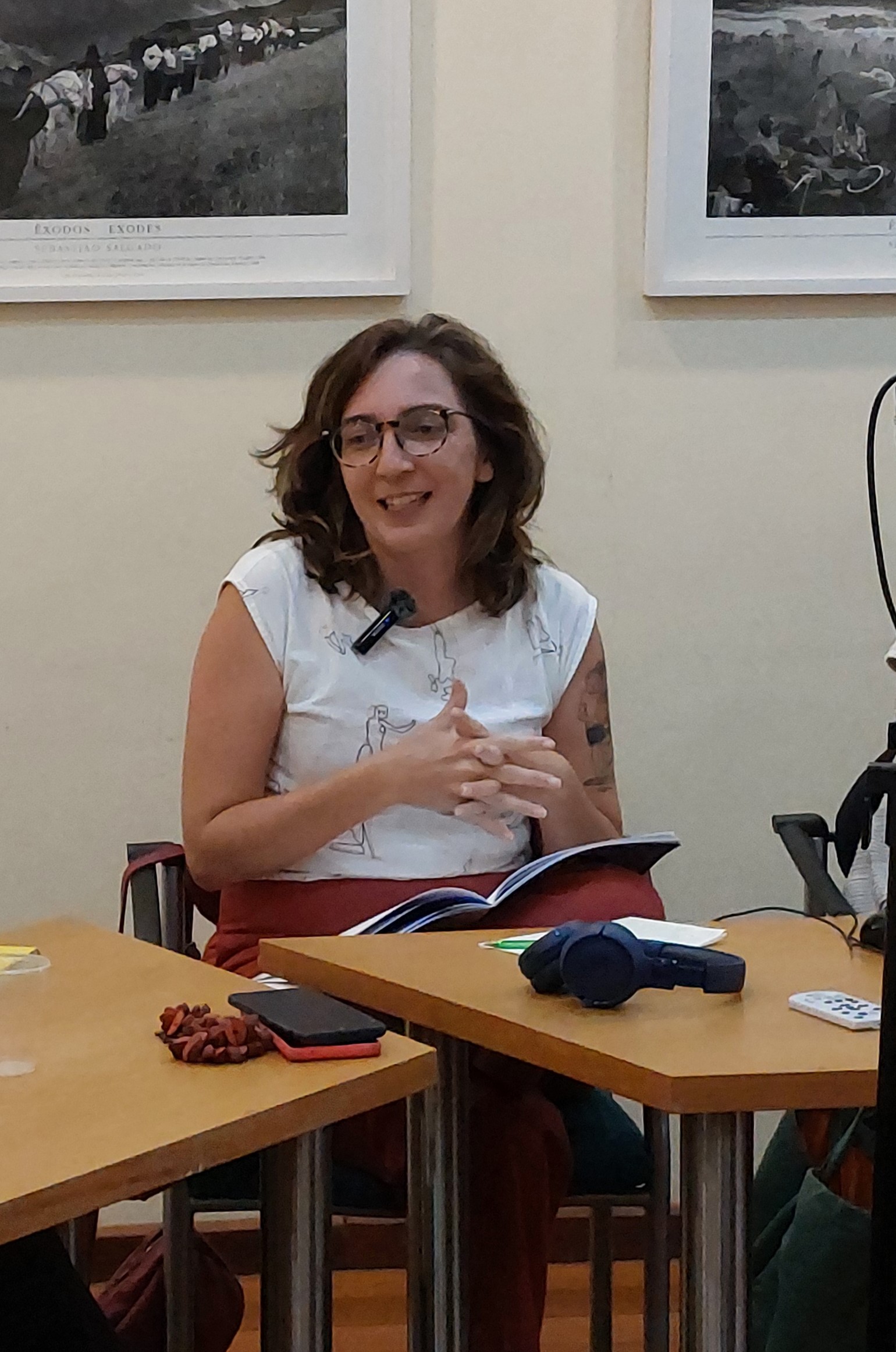 Primeira a falar, Ana Britto trouxe diversos dados sobre os impactos do clima nas águas, mostrando, principalmente, as previsões relacionadas ao Rio de Janeiro que mostram o município e região metropolitana como uma das regiões mais afetadas pelas consequências das mudanças climáticas. A professora lembrou que ao conectarmos clima e água não estamos falando somente de secas como também de enchentes, alterações no regime de chuvas, aumento do nível do mar, além do aumento do próprio consumo humano devido ao calor. Outro ponto levantado por Ana foram as consequências das chuvas concentradas, que sobrecarregam a infraestrutura das cidades, causando extravasamento de esgotos e contaminação de águas subterrâneas.