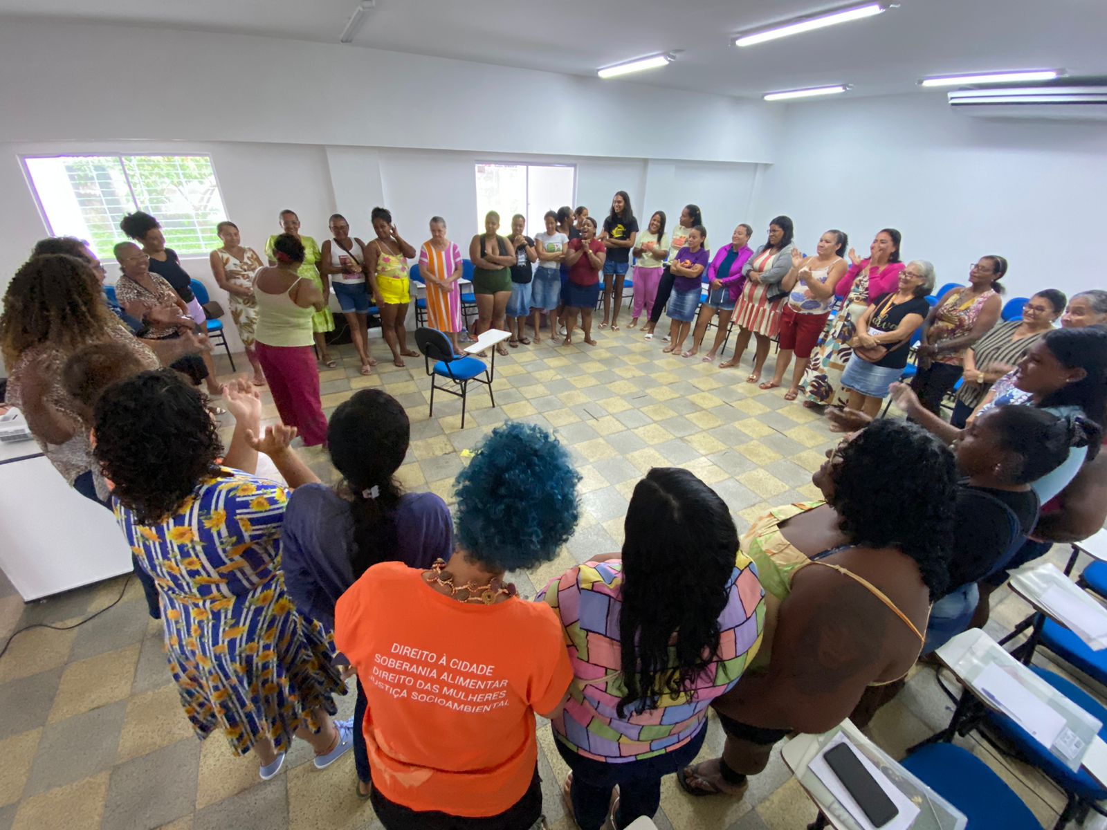 Cerca de 45 mulheres reuniram-se nos dias 27 e 28 de fevereiro para compartilhar suas perspectivas sobre Direito à Cidade e Justiça Socioambiental no curso: “Feminismos, Raça e Direito à Cidade”, conduzido pela FASE Pernambuco com apoio da Misereor. Moradoras de periferias e ocupações urbanas em diversas localidades da Região Metropolitana do Recife, mulheres, de várias idades, uniram-se para identificar as injustiças socioambientais presentes em seus cotidianos através da partilha das experiências com serviços e infraestruturas em seus territórios.