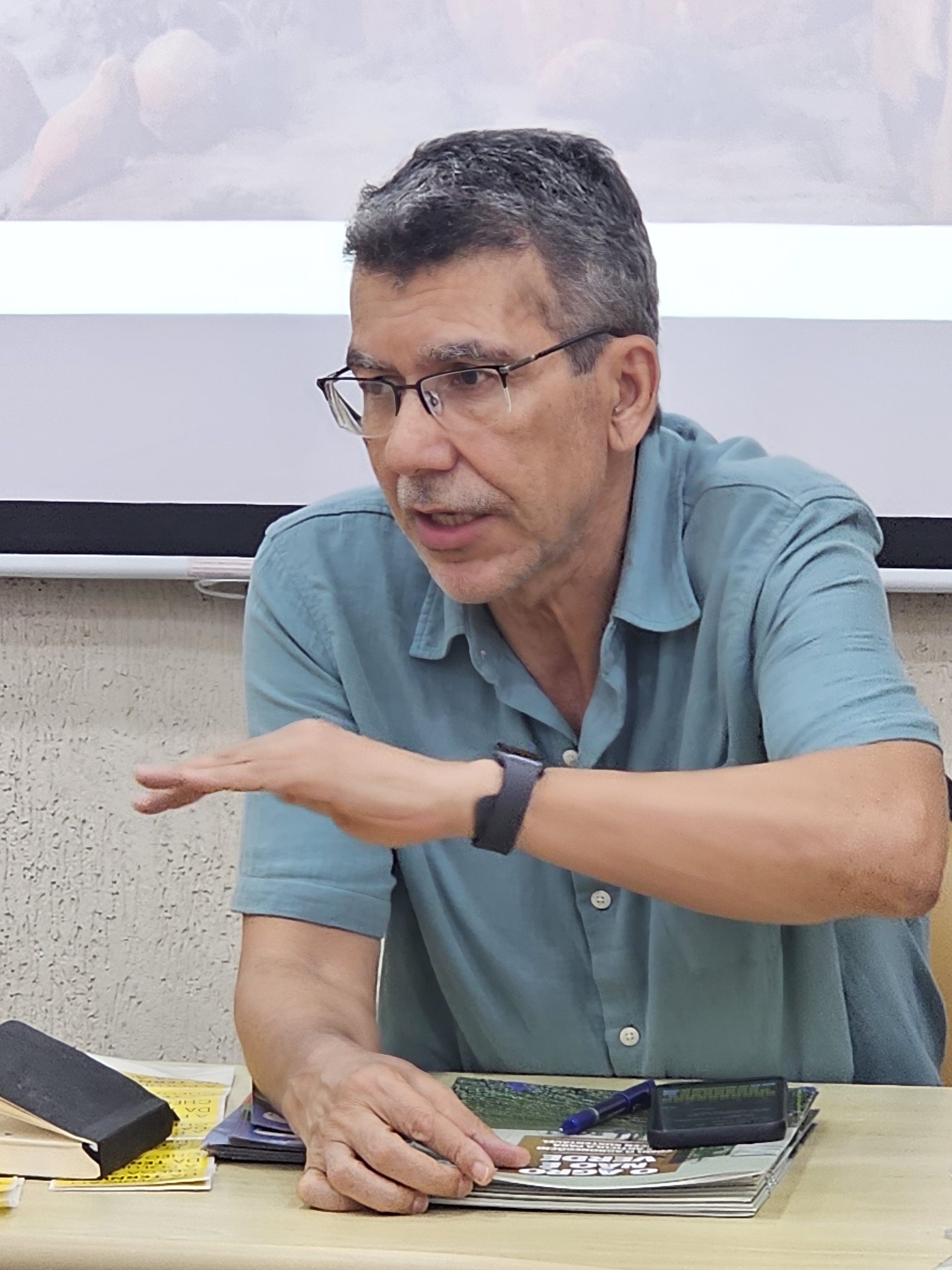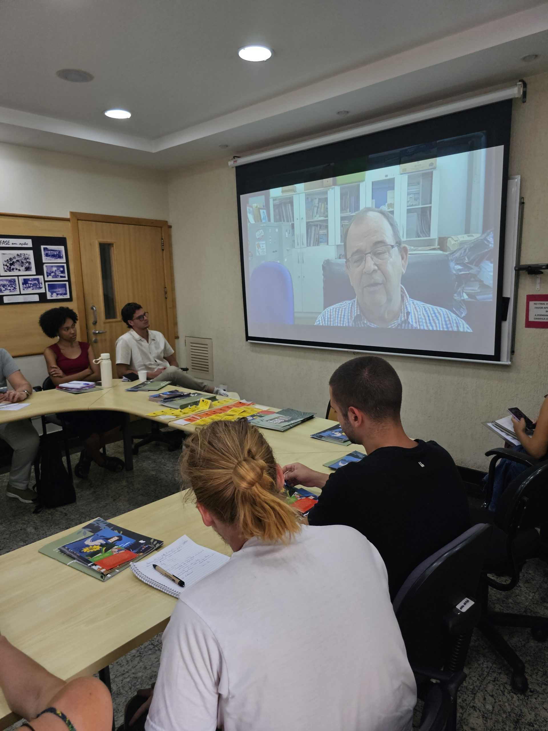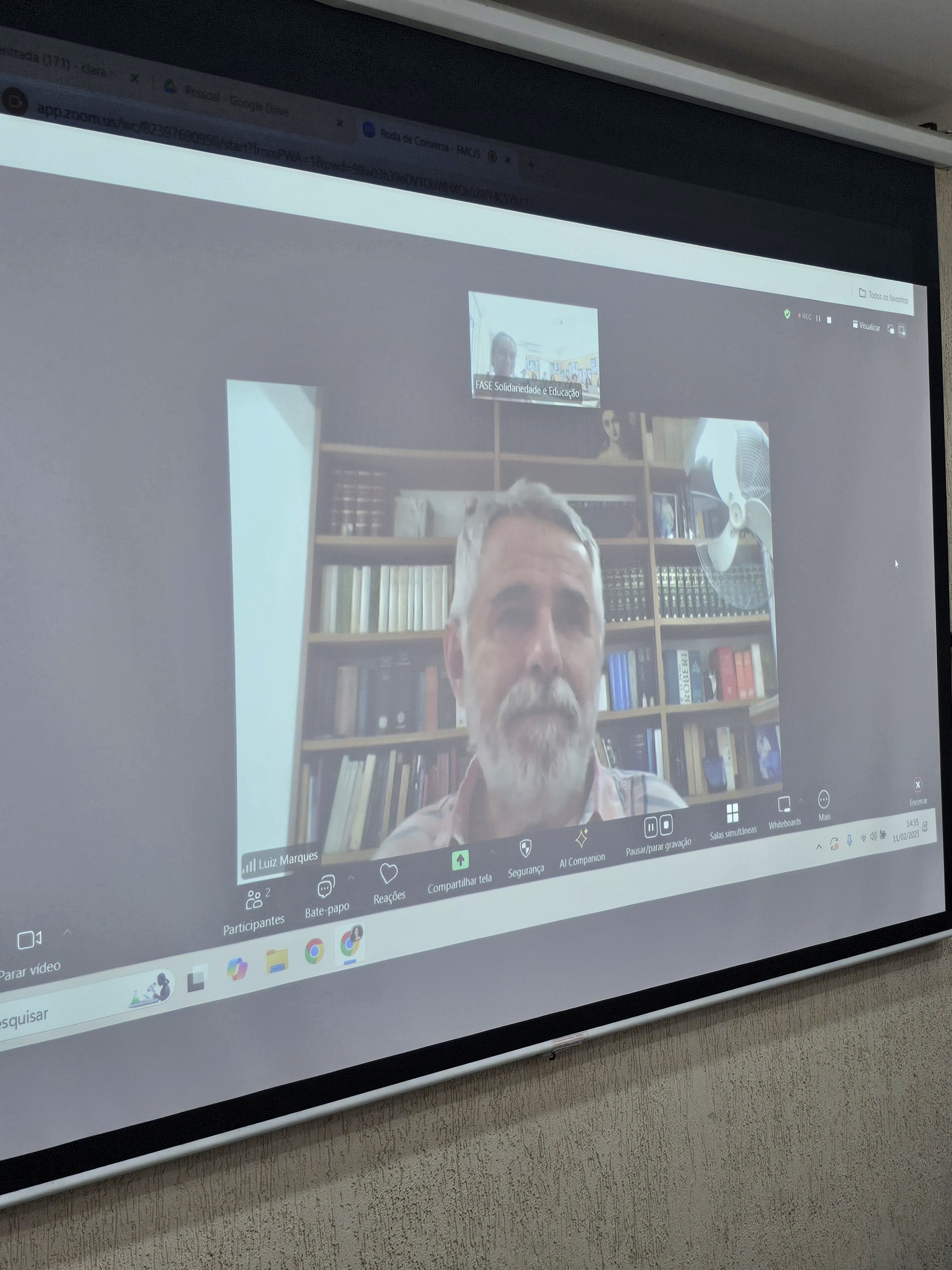 Após a primeira exposição, a roda seguiu com Marcos Pedlovski, professor associado na Universidade Estadual do Norte Fluminense – UENF, que colocou uma questão fundamental: como dialogar com a sociedade se os meios de comunicação mais populares e as redes sociais são controlados por empresários que defendem as ideias de extrema-direita e são negacionistas do clima? Ele ainda sugeriu a reforma agrária urbana “para que a classe trabalhadora possa não sofrer os graves impactos das mudanças climáticas por estarem nas áreas condenadas”, defendeu. “Mas esse diálogo não será através das redes sociais”, enfatizou.