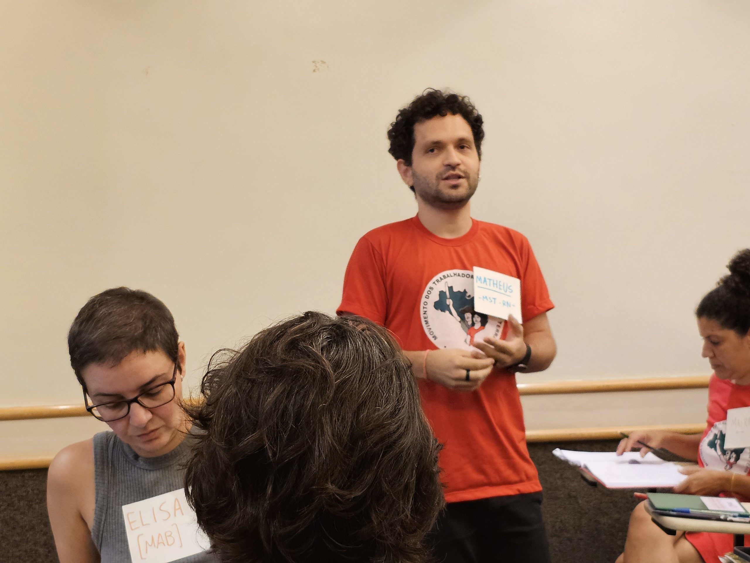 Miquelis Schiavon conta que ainda não tinha participado de nenhuma atividade promovida pela FASE, mas o que o chamou a atenção foi a diversidade. “Essa questão de contemplar os diversos territórios do país faz com que quem está num outro território consiga entender a dimensão que o país é e as dificuldades que, às vezes, temos no território são pequenas frente às dimensões e aos desafios que os territórios têm”, analisa. “Eu acho que esses temas do curso são primordiais, tendo em vista que a desinformação hoje reina e é a principal forma que o capital ou que essas empresas utilizam para cooptar as pessoas. E essa informação correta, do ponto de vista de entender o que está em jogo, é muito importante. Porque aí os territórios e as comunidades podem decidir sobre a sua vida, entre querer ou não se submeter a uma determinada ação de uma empresa ou de algo, então esse empoderamento é importante e só é possível a partir da informação, ter a informação é central”, completa a liderança do Movimento de Pequenos Agricultores (MPA) do Rio Grande do Sul.