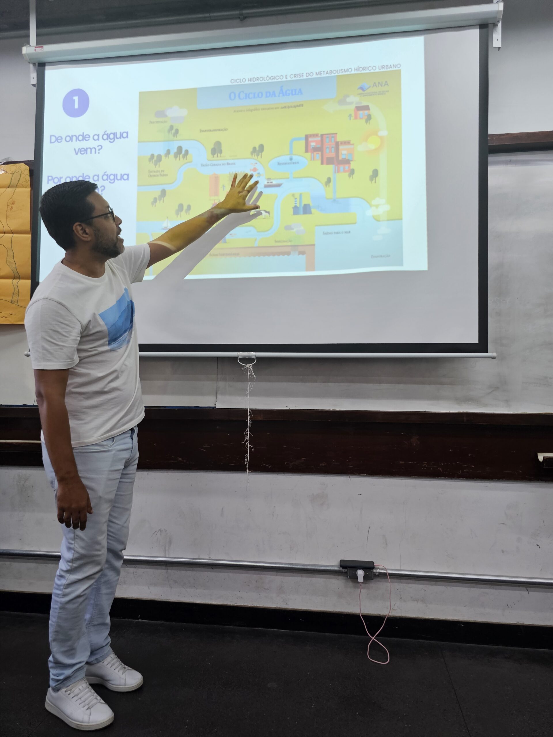 Na terceira aula, Bruno França, educador da FASE Rio, discutiu sobre os recursos hídricos e as emergências climáticas, abordando temas como o caminho das águas, seus usos e os principais desafios enfrentados ao longo de seu percurso da nascente ao mar. “O debate do direito à água e mudanças climáticas estão intimamente relacionados. Estabelece a relação entre as mudanças climáticas, que provocam o aquecimento global, que por sua vez vão aumentar o estresse no sistema de abastecimento de água. Então, se a gente está falando da água como direito, da água como Direito Humano, a proteção dos elementos, dos fatores que reduzem os impactos das mudanças climáticas, também estamos falando diretamente da proteção das água”, explica Bruno.