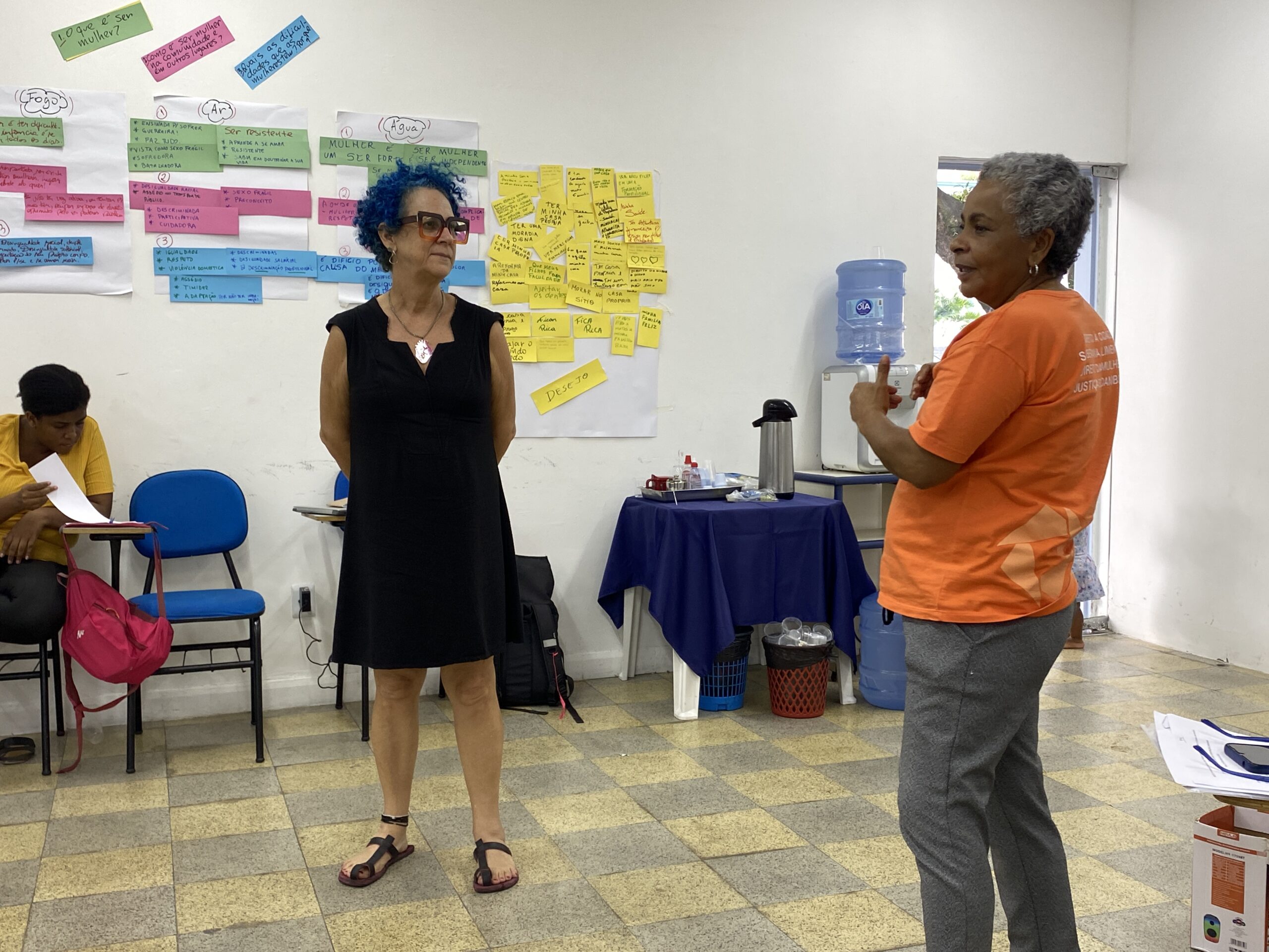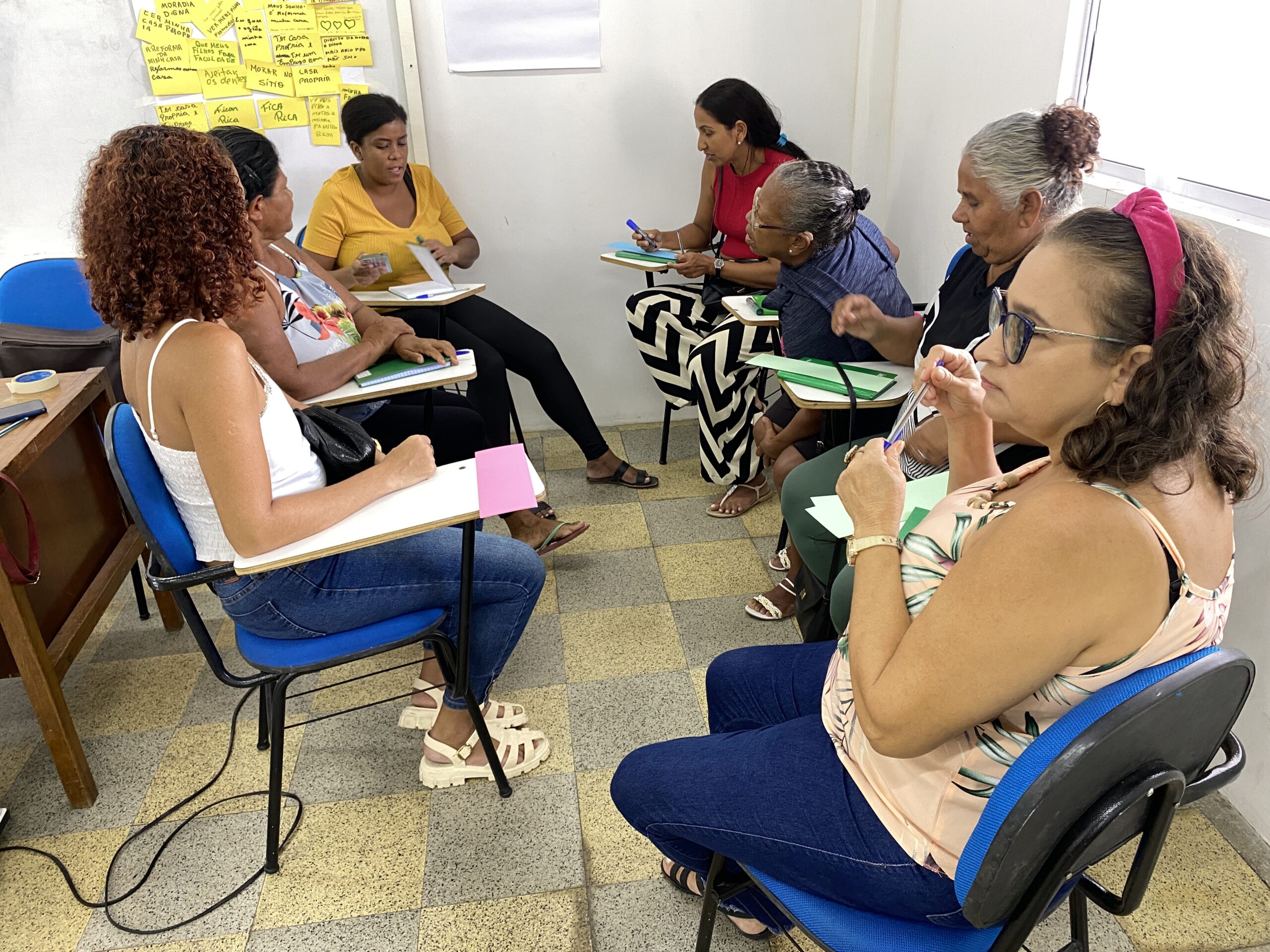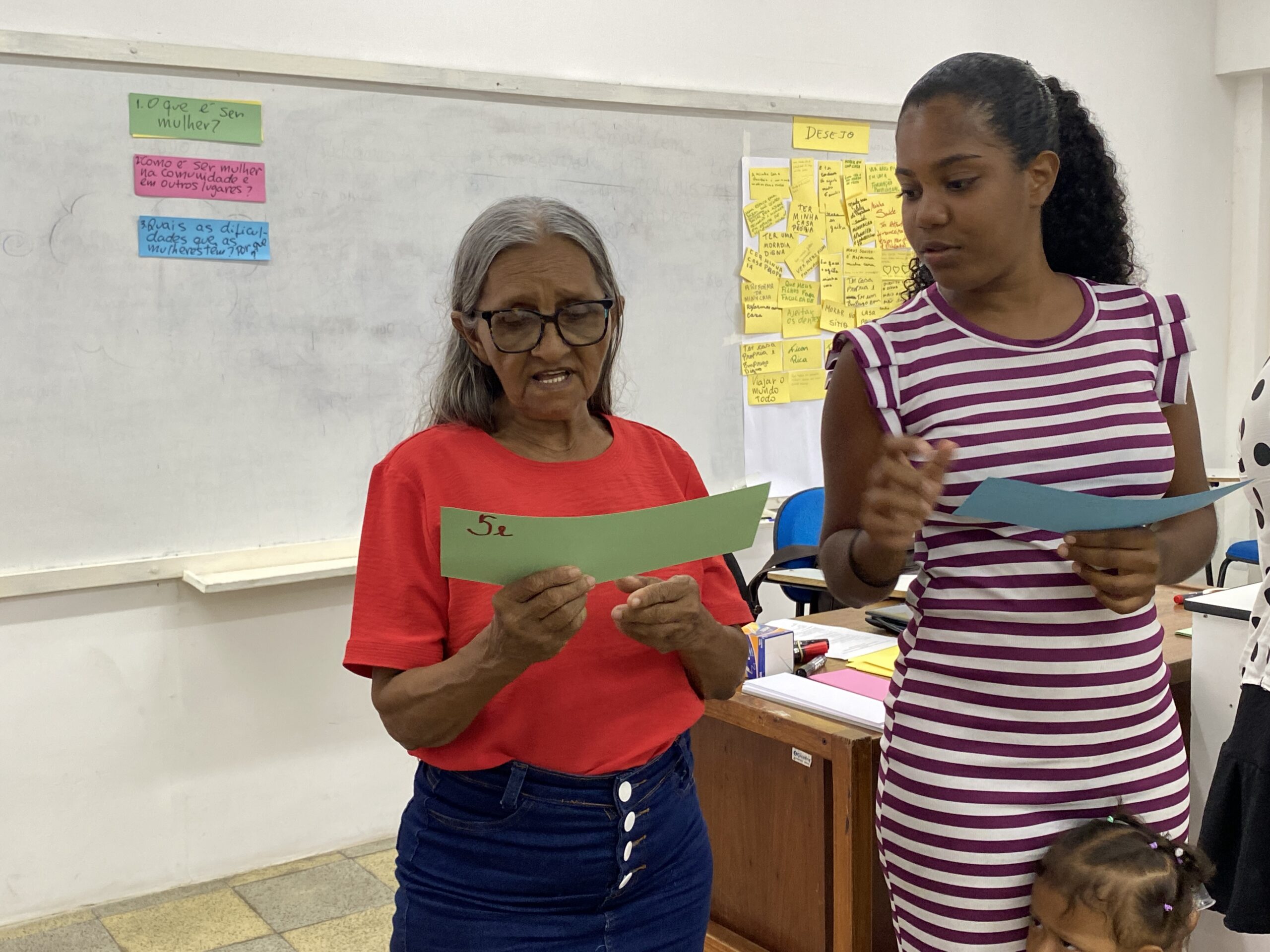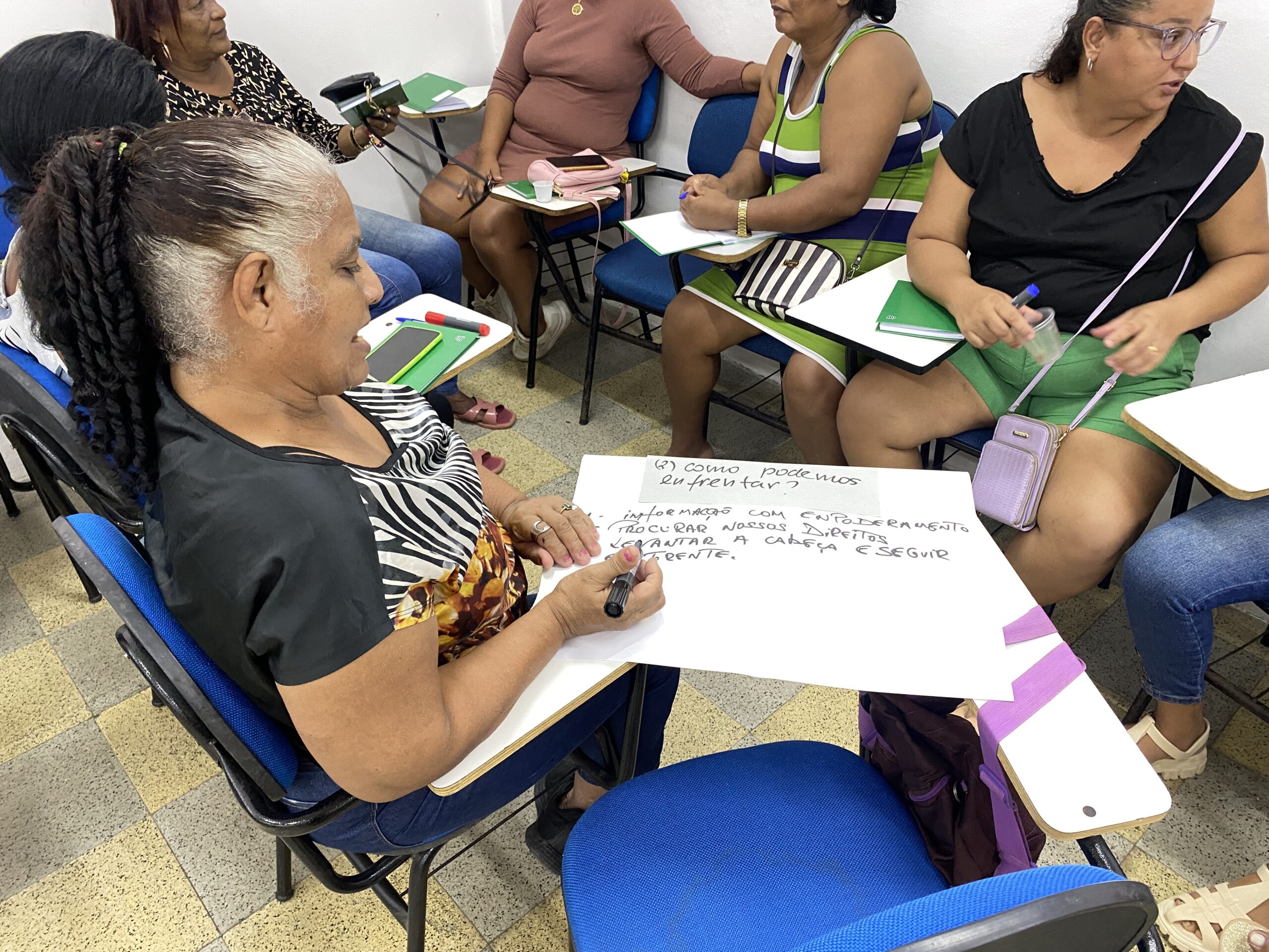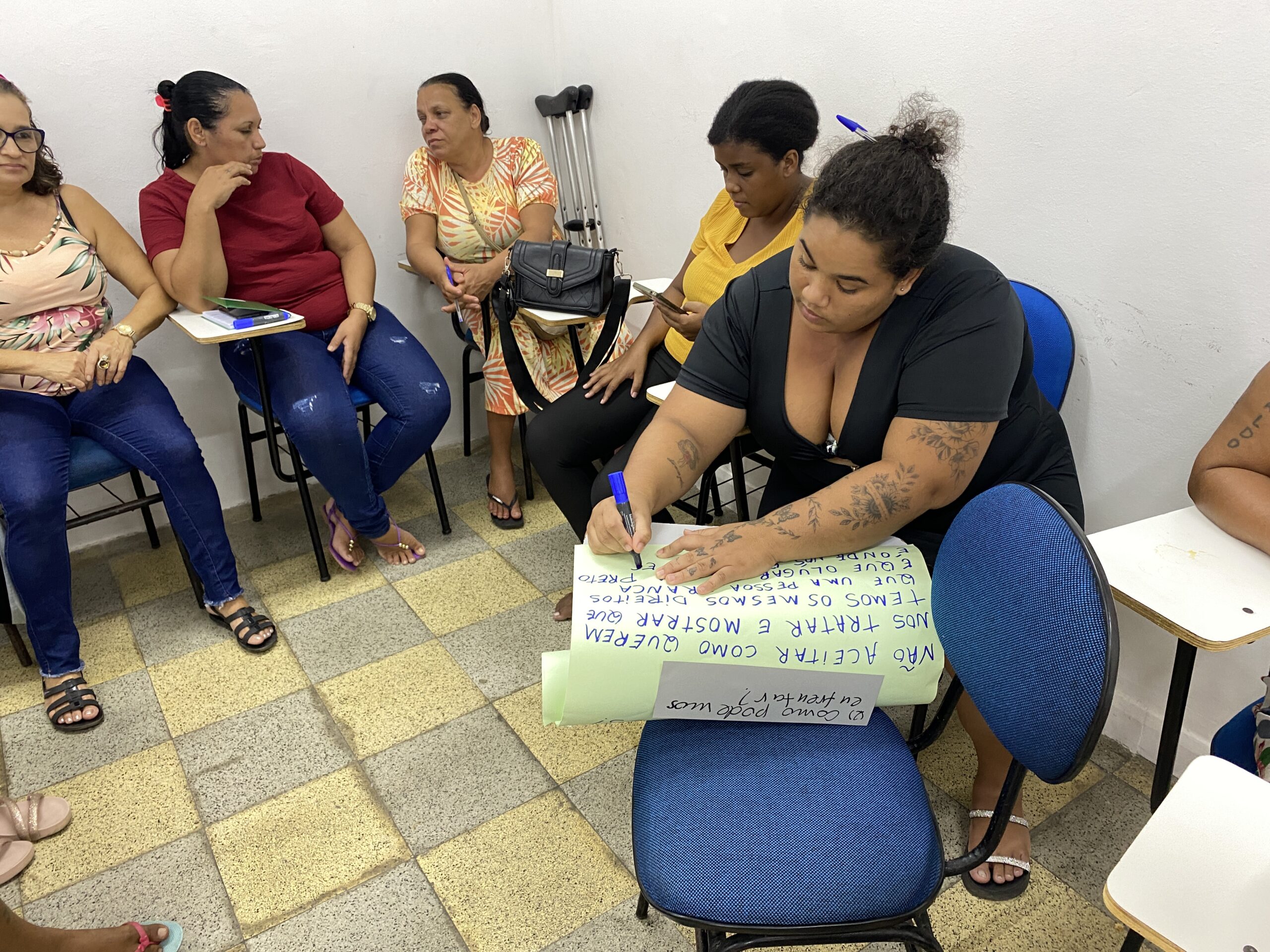 No debate, as participantes compartilharam suas experiências como mulheres brancas e negras, mulheres com deficiência, mulheres trans, mulheres jovens, adultas e idosas, mães e avós, entre outras identidades. Esta é a segunda edição do curso, que foi facilitado pelas educadoras Rosimere Nery e Sarah Vidal, e é destinado a mulheres que desejam aprofundar seus conhecimentos e práticas em defesa dos direitos humanos e da equidade social.