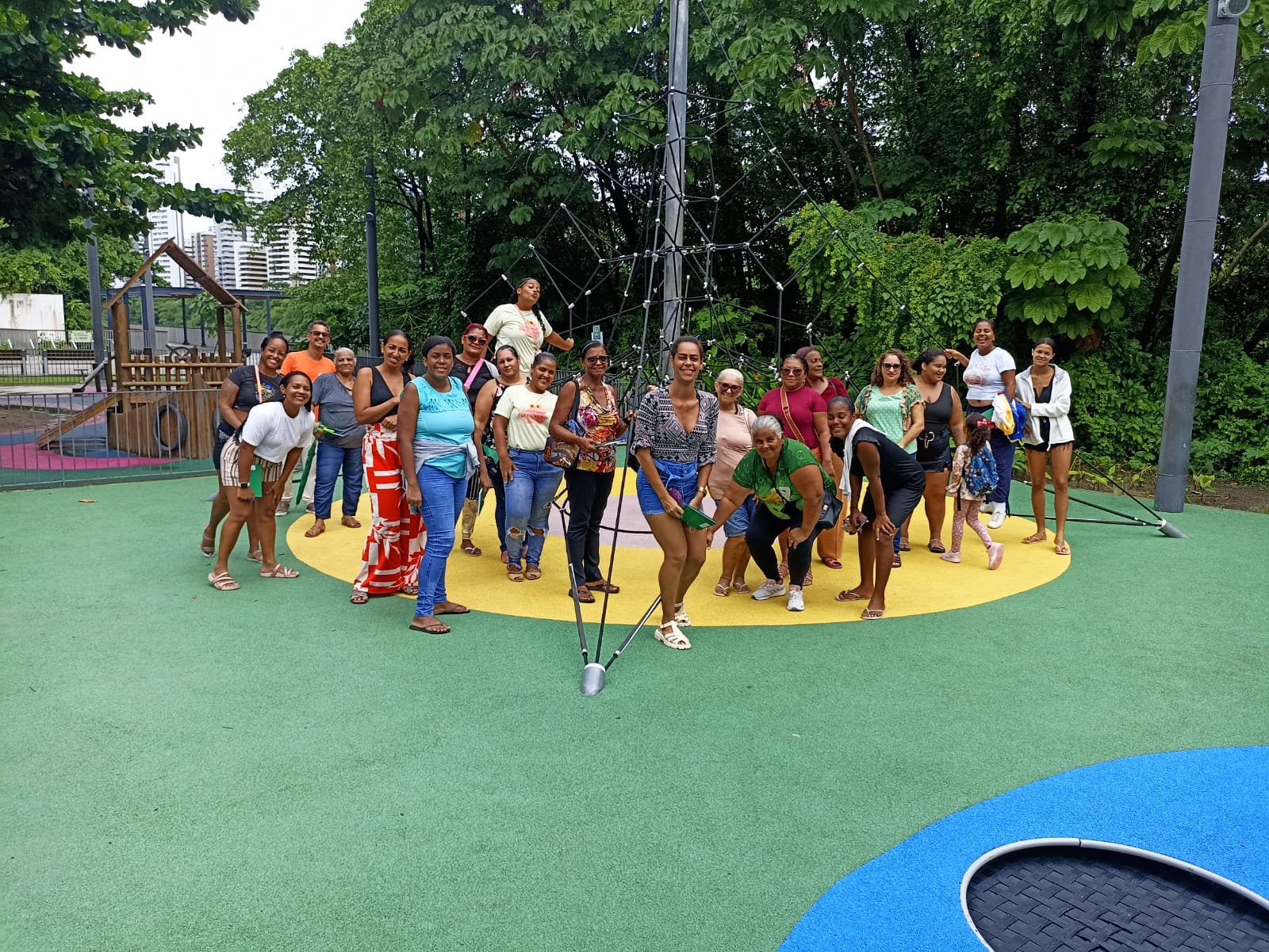 No segundo dia de formação, o tema foi Direito à Cidade e Injustiça Socioambiental. André Araripe, educador da FASE Pernambuco, ajudou as participantes a identificar as injustiças socioambientais presentes em seus cotidianos, compartilhando experiências com serviços e infraestruturas em seus territórios. Além dos debates teóricos, o grupo explorou uma região do bairro da Madalena, na Zona Norte do Recife, para comparar os aspectos naturais, infraestrutura, mobilidade, moradia e segurança com os locais onde residem. Questões como o Direito à Moradia e ao Lazer, garantidos para os moradores daquela área, chamaram a atenção das participantes.