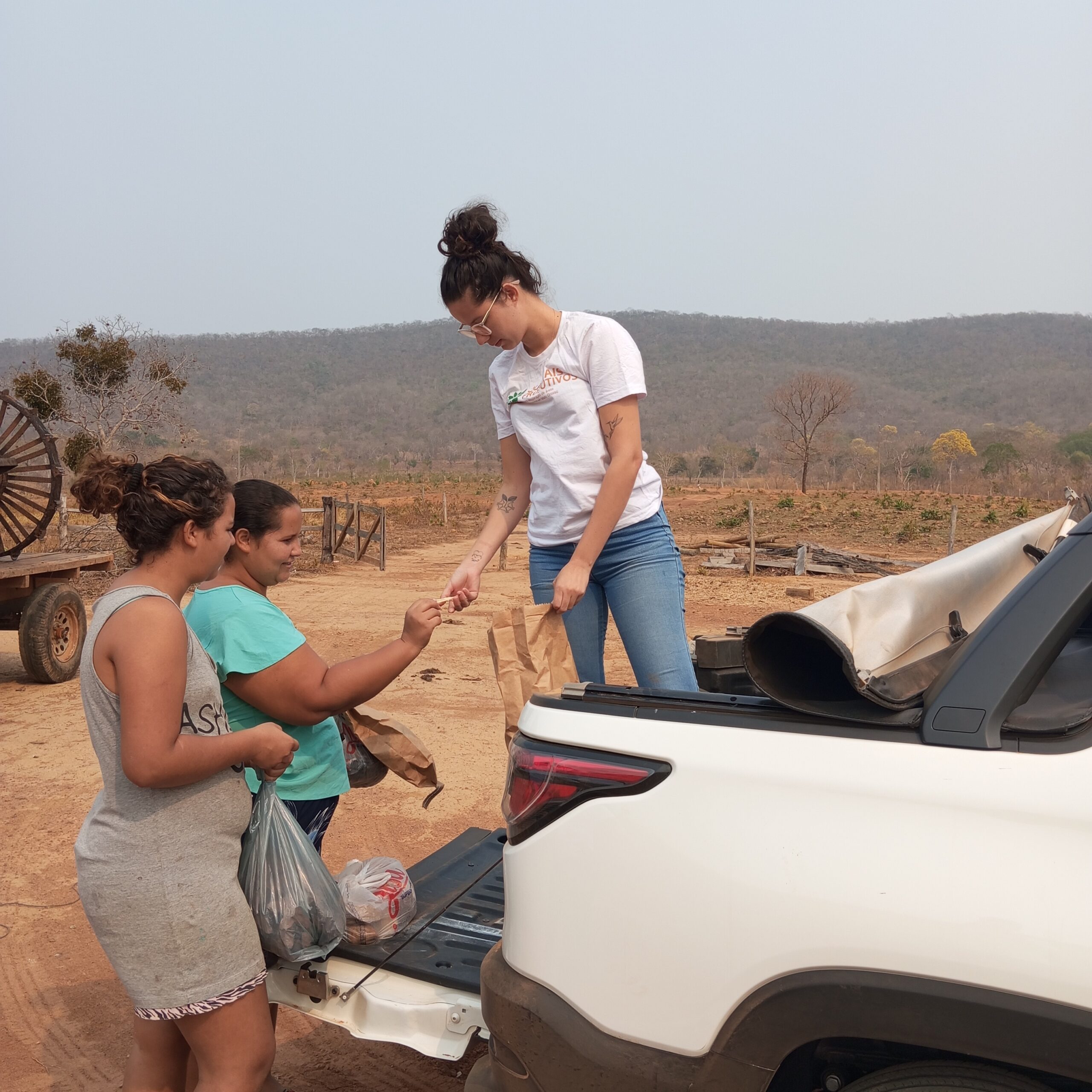 No mês de setembro, houve uma visita a seis beneficiárias e beneficiários do projeto “Quintais Produtivos para Recuperação de Áreas Degradadas em Mato Grosso” no P.A Laranjeiras I, II e comunidade da Mata Comprida e Ipê Roxo. Durante a visita, foram entregues sementes de espécies nativas como jacarandá, ipê, paineira, baginha e cedro, fundamentais para restaurar a biodiversidade local e auxiliar na recuperação da produtividade do solo a partir da ciclagem de nutrientes. Além disso, os agricultores receberam materiais como sombrite e mangueiras para reformar seus viveiros e instalar nas roças, além de hidrogel, um componente que ajuda a manter a umidade no solo e facilitar o crescimento das novas mudas. Com esses materiais, espera-se que as plantas sobrevivam melhor à seca e que haja uma recuperação mais rápida do solo.