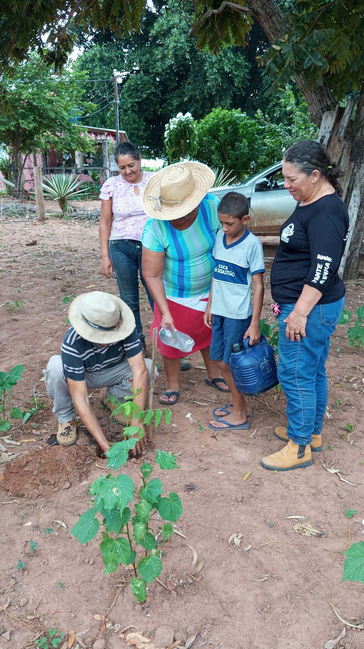 Até agora, 4.756 mudas de árvores florestais nativas (aroeira, baru, jatobá, gonçaleiro…) e frutíferas (manga, caju, goiaba, acerola, etc) foram entregues para a comunidade, além de sementes crioulas e sementes de adubos verdes, como a crotalária e o feijão de porco. Cada proprietário está empenhado na implementação de aproximadamente um hectare de agrofloresta – tipo de prática agroecológica que consorcia espécies arbóreas perenes, frutíferas, arbustivas, cultivos anuais, espécies forrageiras e adubos verdes.
