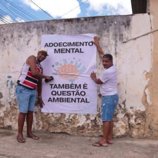 Comunidades da Zona Oeste do Recife, em Pernambuco, realizam intervenção urbana de sensibilização socioambiental, levando mensagens diretas às ruas sobre cuidado com a natureza e defesa do Rio Tejipió. A ação aconteceu nos bairros de Jardim Uchôa, Caçote, Ibura, Barro, Coqueiral e Totó, com a colagem de lambe-lambes que dialogam com o cotidiano das pessoas e provocam reflexão sobre os impactos das mudanças climáticas nos territórios.