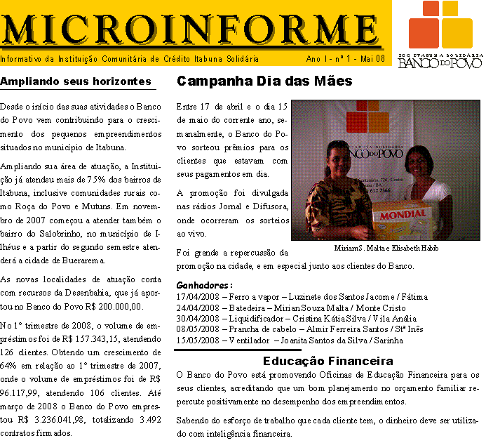 Clique aqui e veja o primeiro número do Informativo Eletrônico elaborado pela equipe do Banco do Povo de Itabuna.