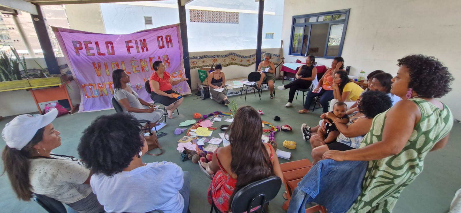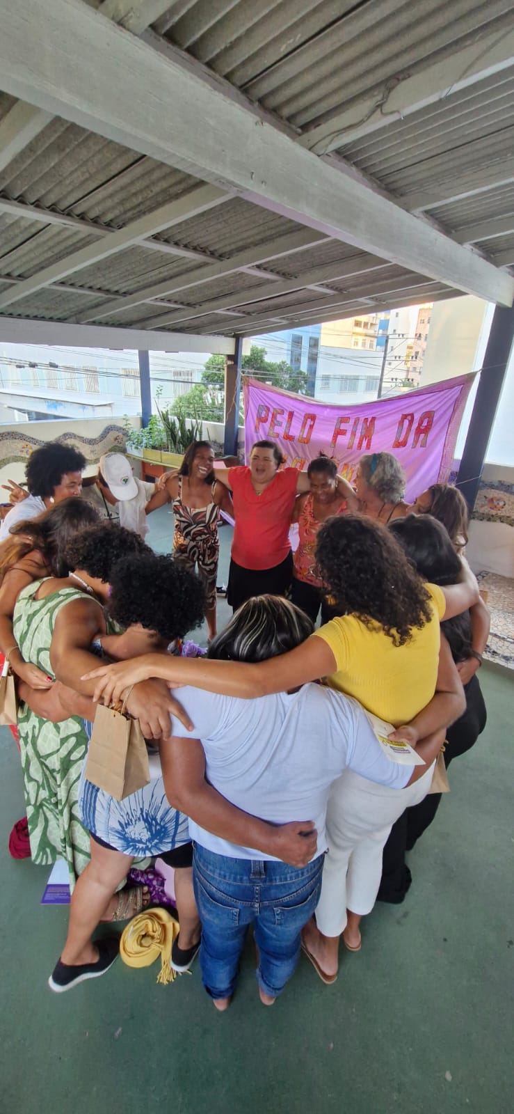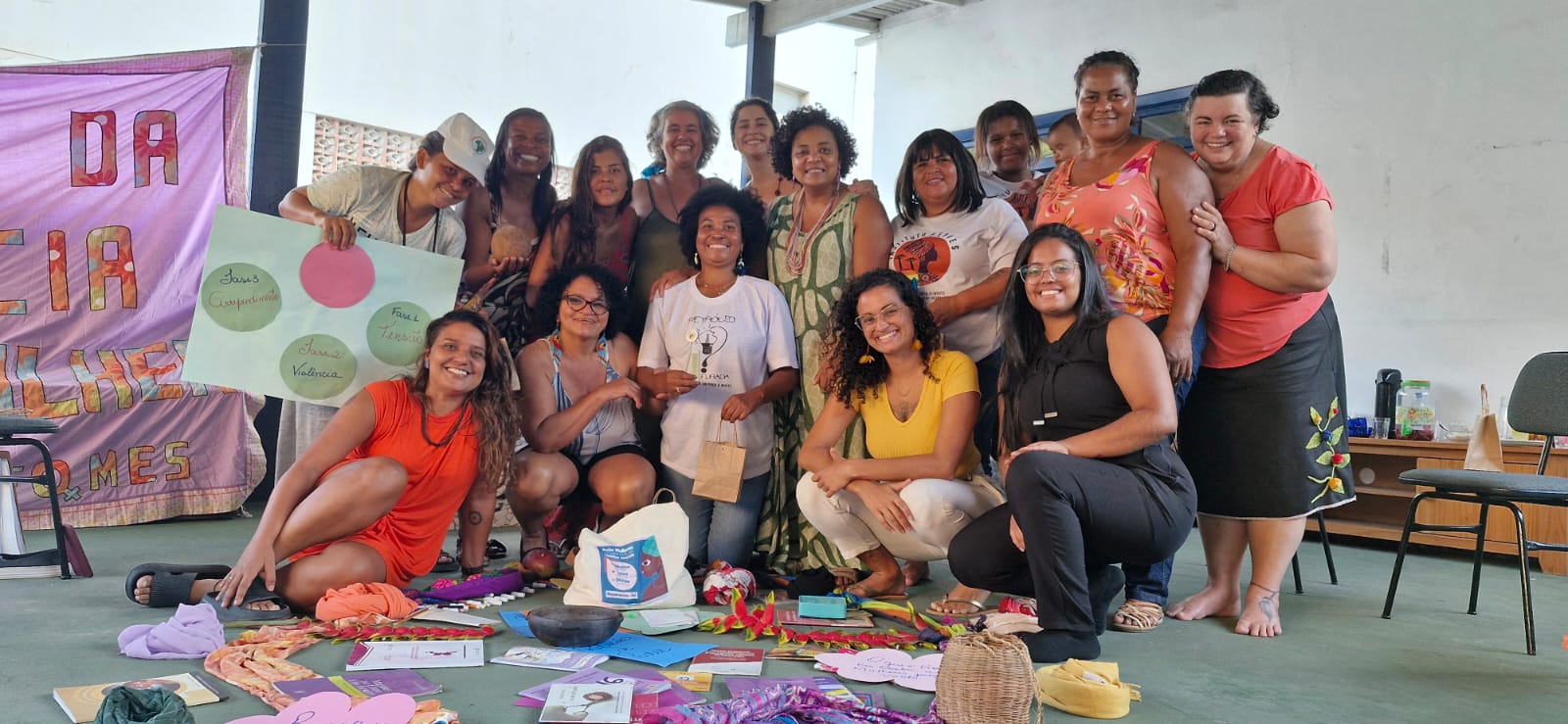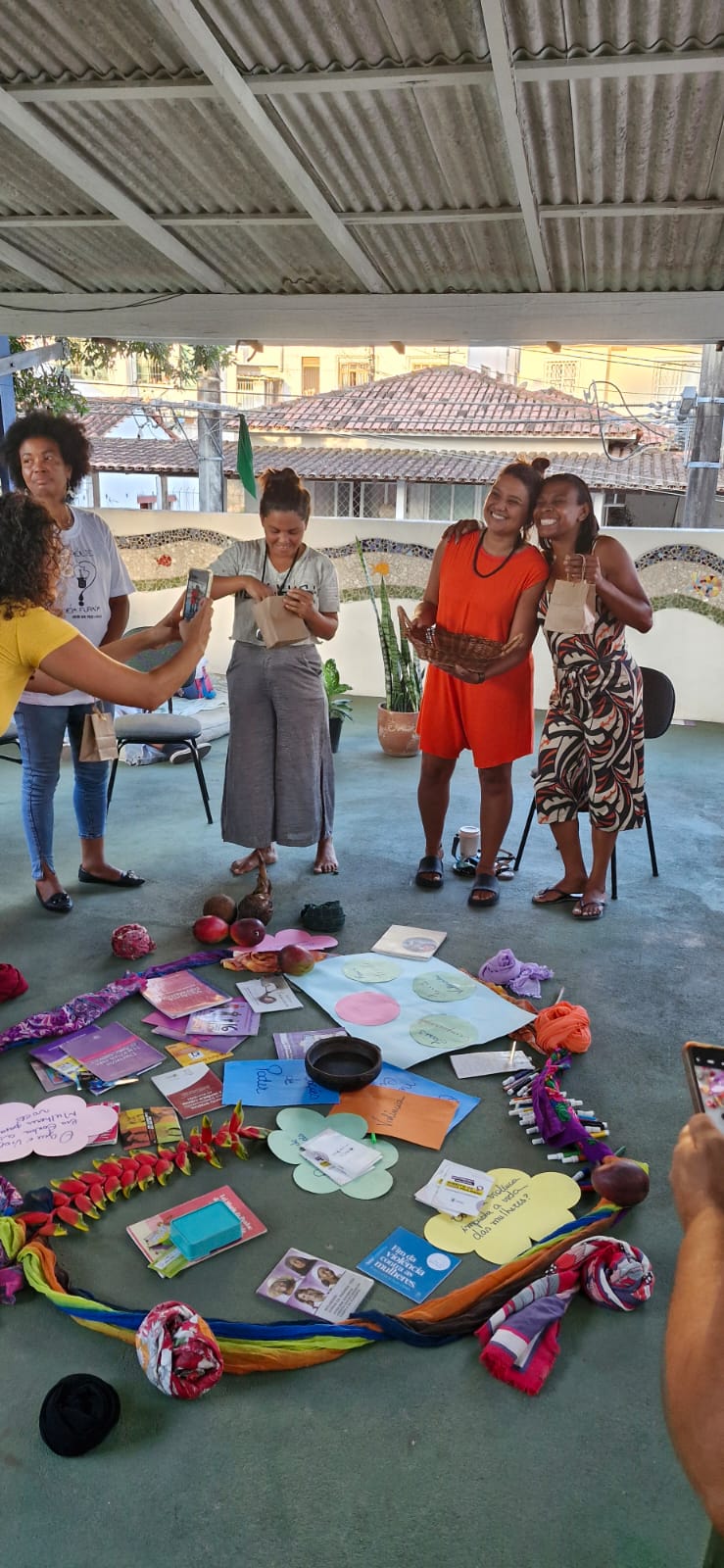 Entre a programação, houve apresentação e integração do grupo com atividades de autocuidado e cuidado coletivo como ato político; momentos de compartilhamento de vivências entre elas, onde elas fizeram um mapeamento das violências contra as mulheres e as formas de enfrentamento nos territórios e ainda exercícios de identificação do que enxergamos como violência, distinguindo os tipos de violência contra as mulheres.