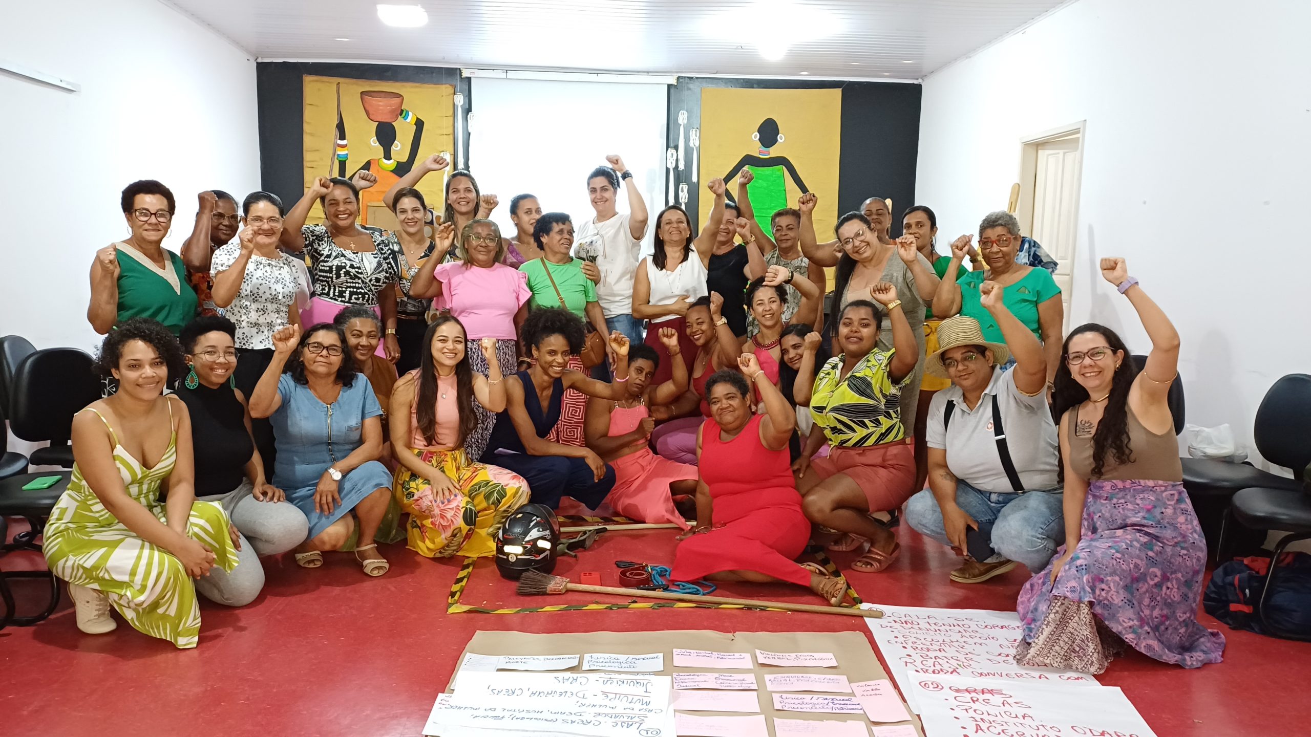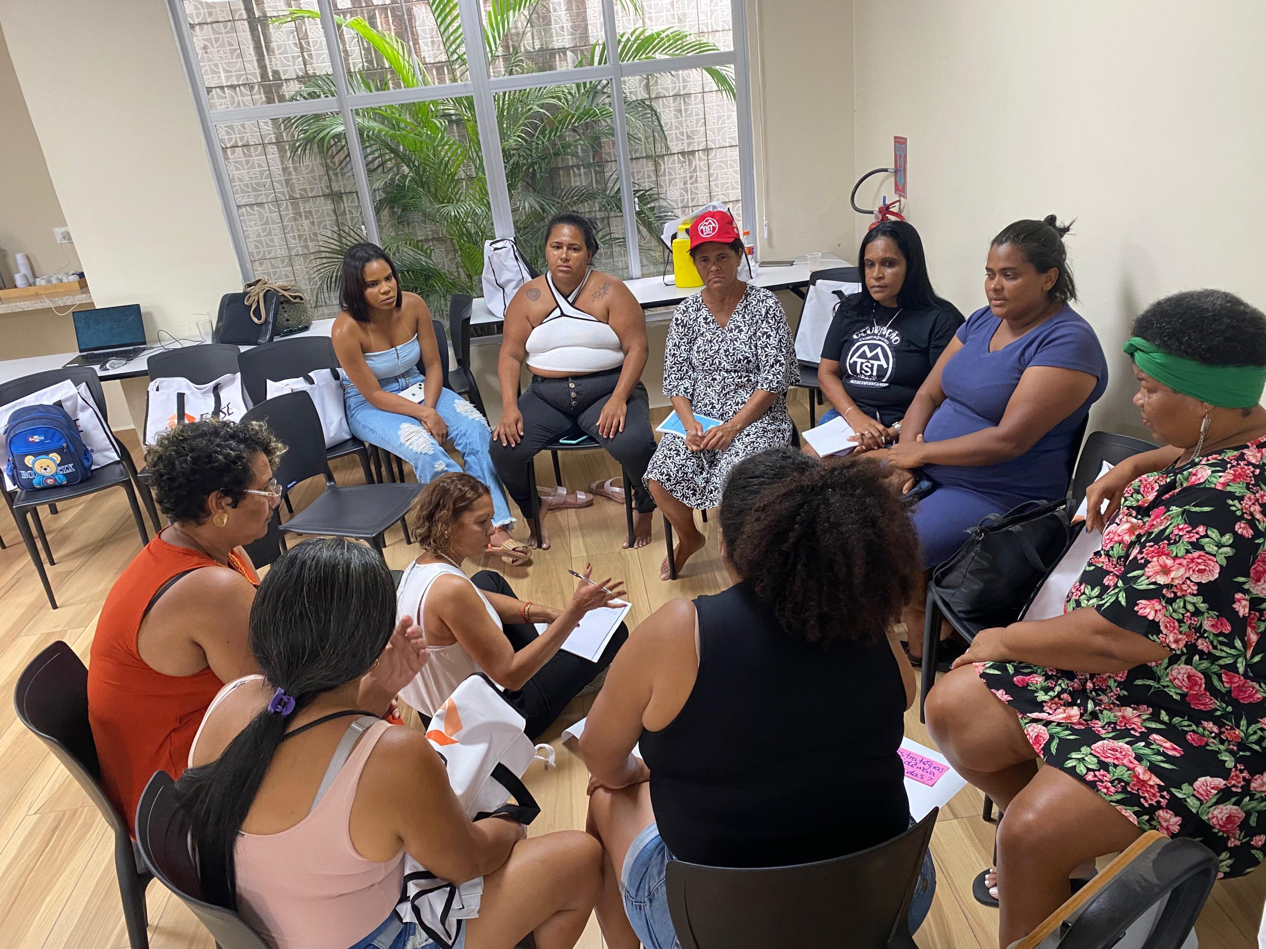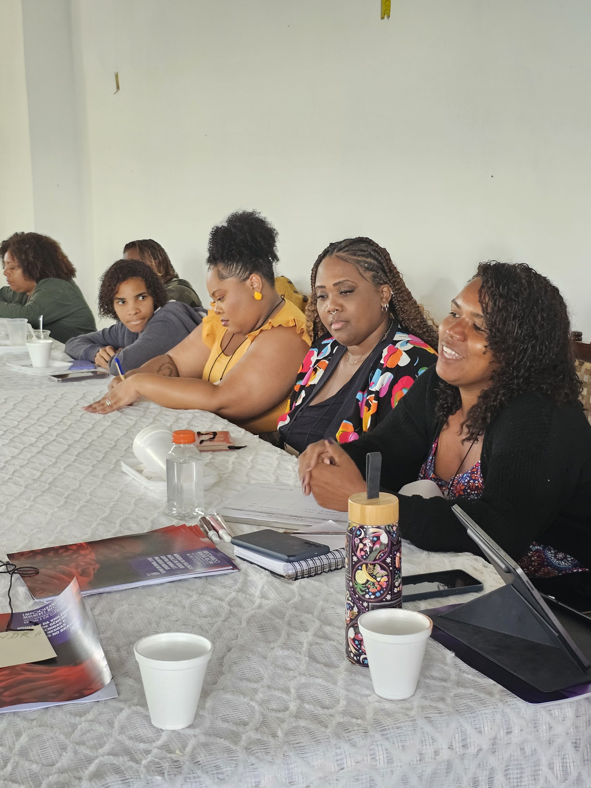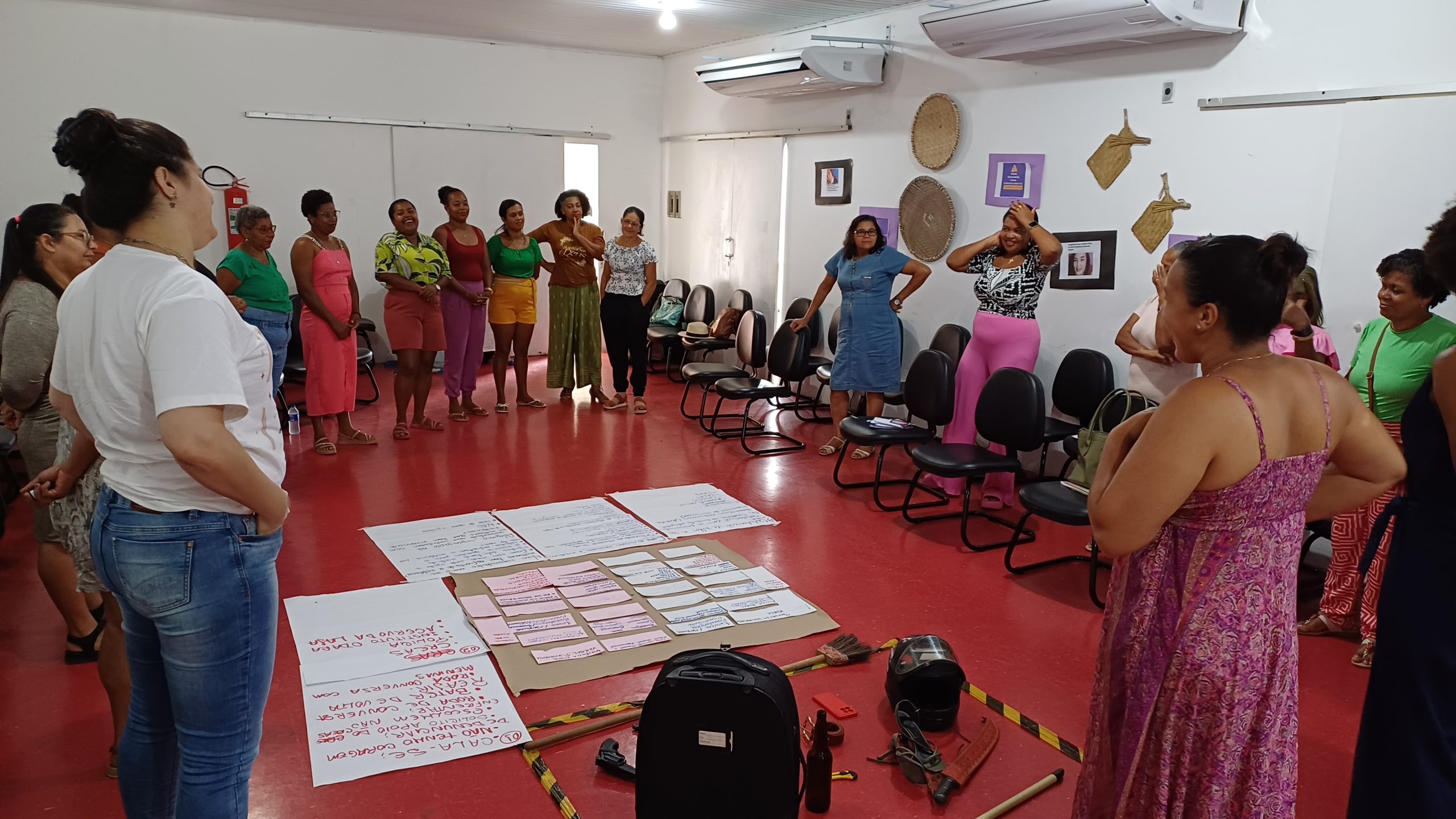Entre a programação, houve apresentação e integração do grupo com atividades de autocuidado e cuidado coletivo como ato político; momentos de compartilhamento de vivências entre elas, onde elas fizeram um mapeamento das violências contra as mulheres e as formas de enfrentamento nos territórios e ainda exercícios de identificação do que enxergamos como violência, distinguindo os tipos de violência contra as mulheres.