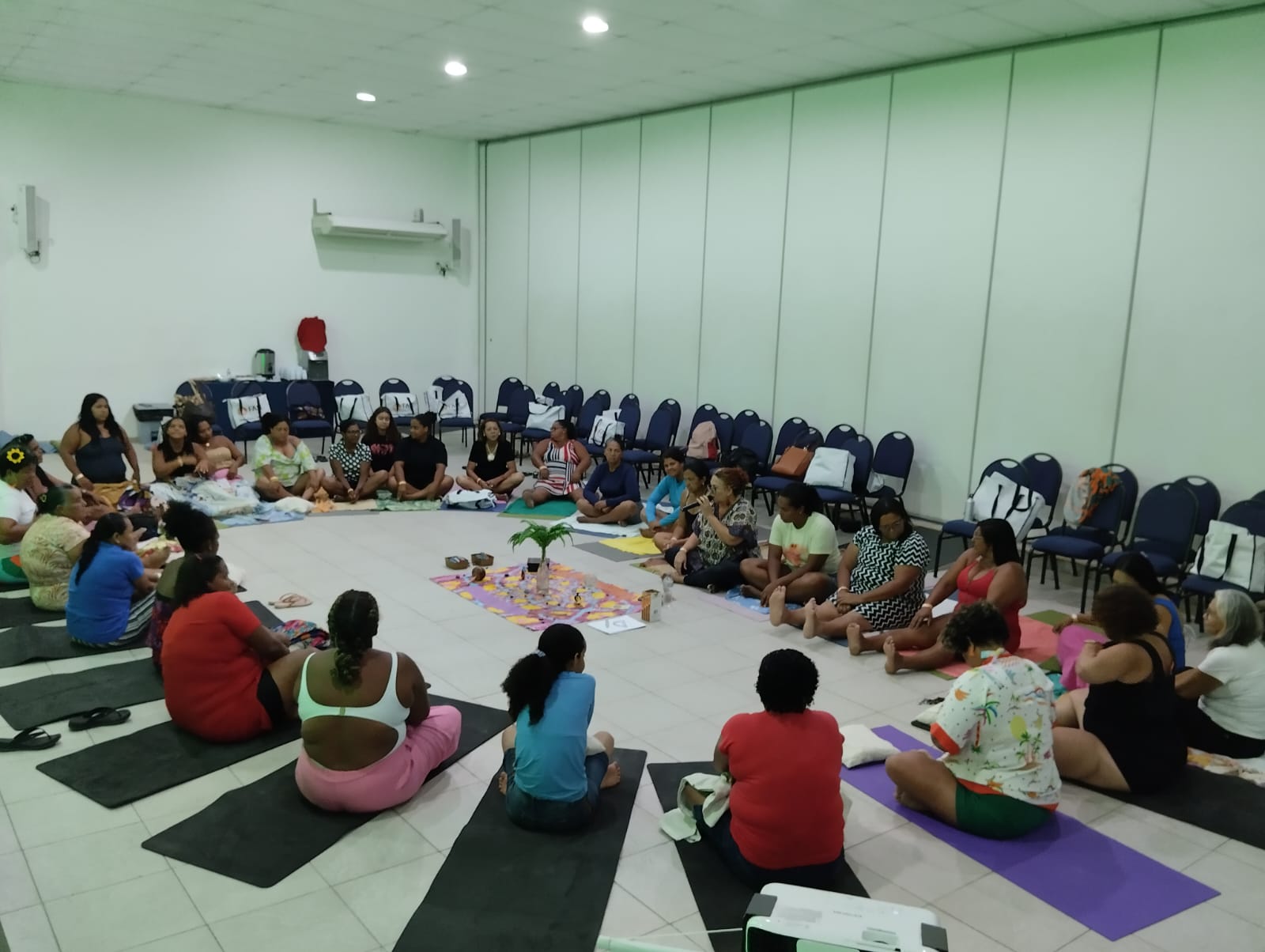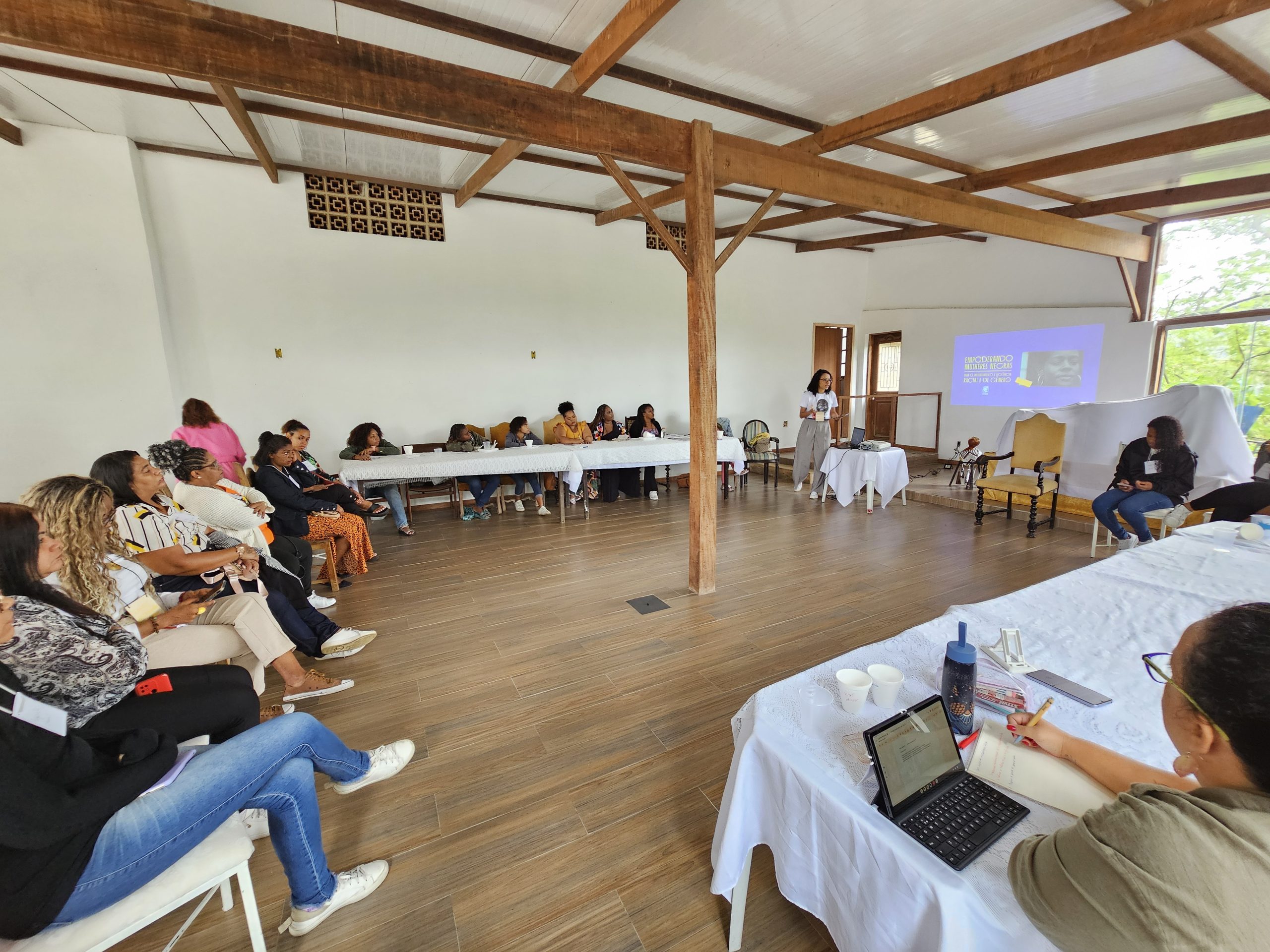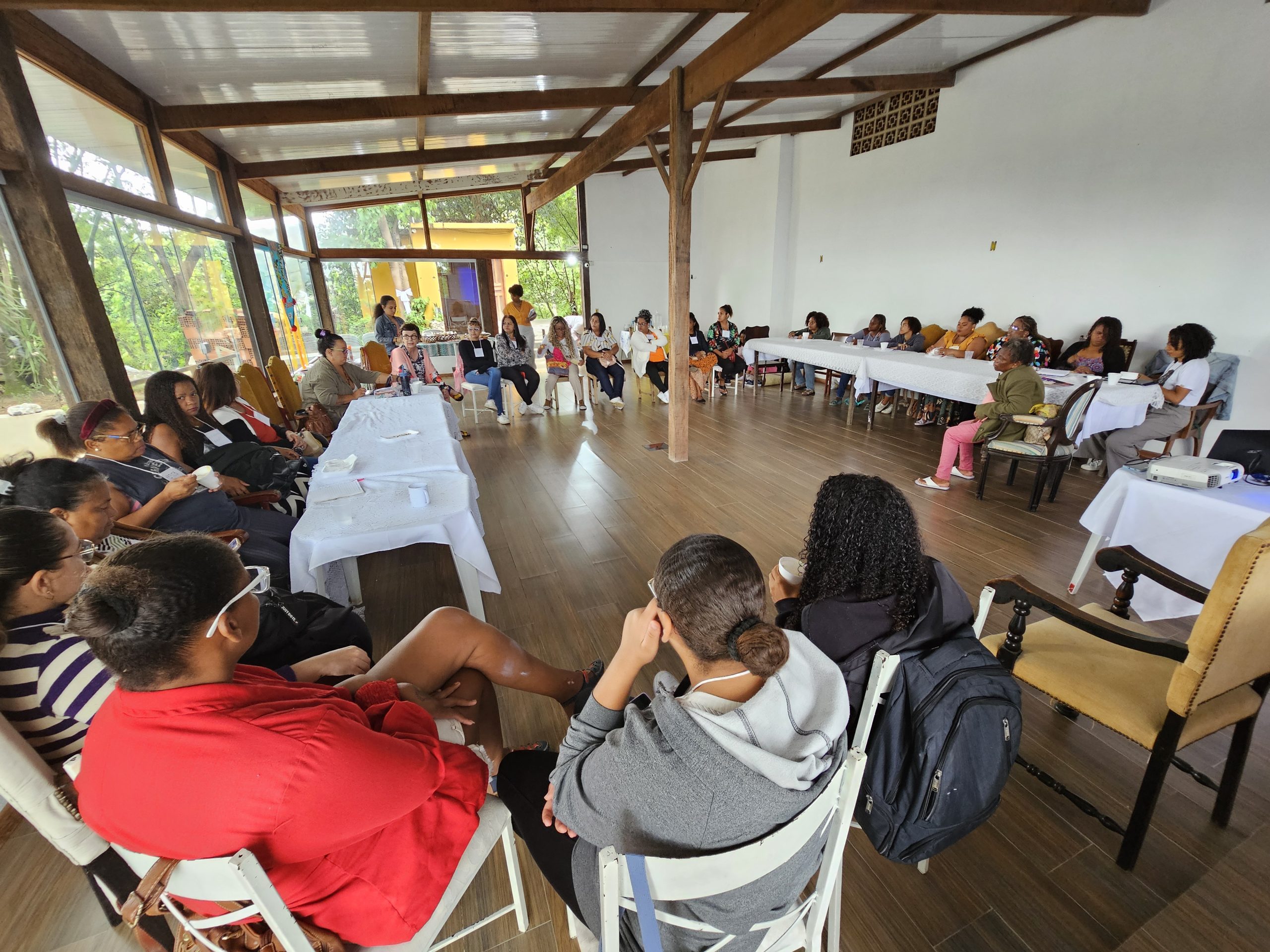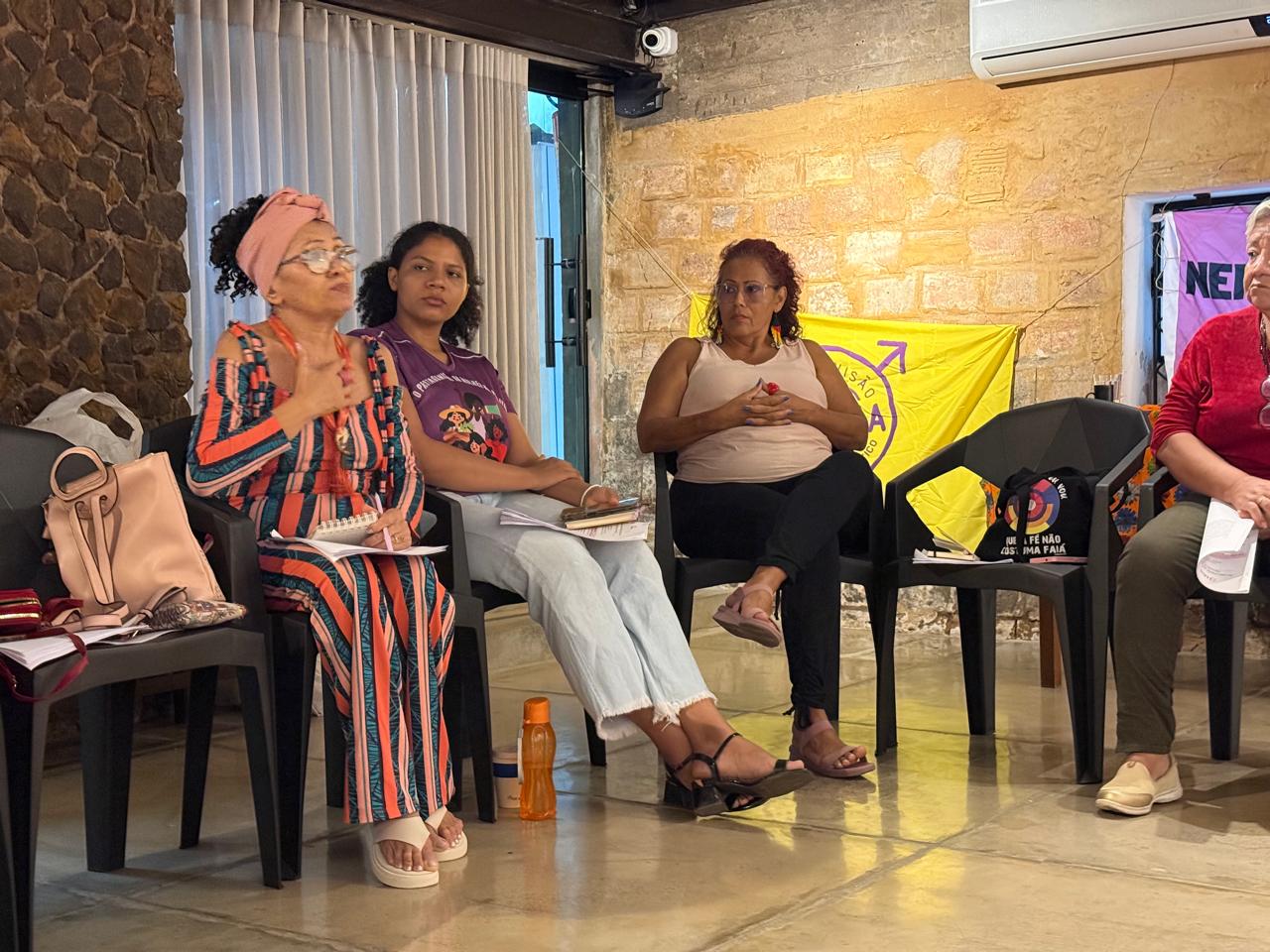 Entre a programação, houve apresentação e integração do grupo com atividades de autocuidado e cuidado coletivo como ato político; momentos de compartilhamento de vivências entre elas, onde elas fizeram um mapeamento das violências contra as mulheres e as formas de enfrentamento nos territórios e ainda exercícios de identificação do que enxergamos como violência, distinguindo os tipos de violência contra as mulheres.