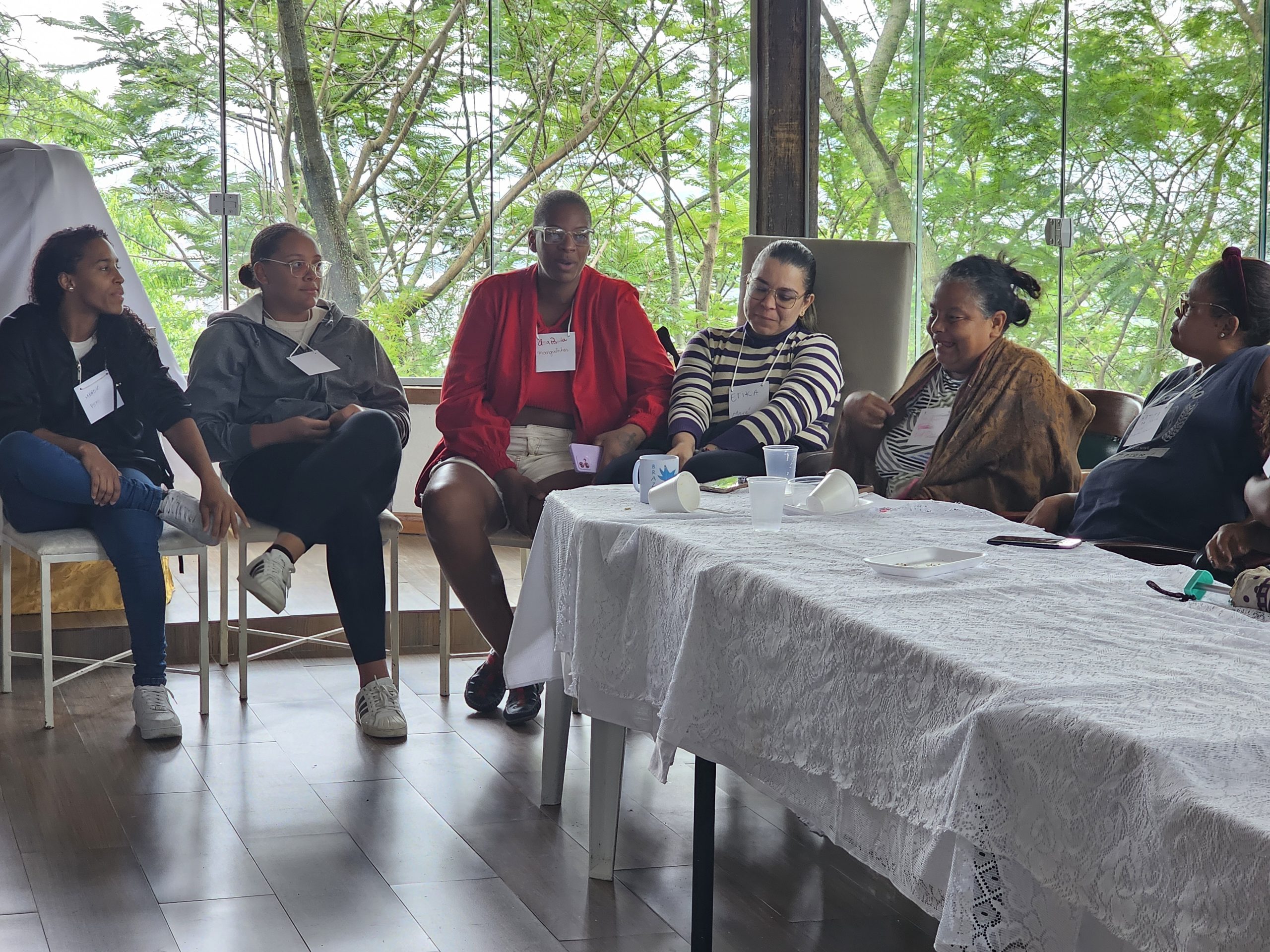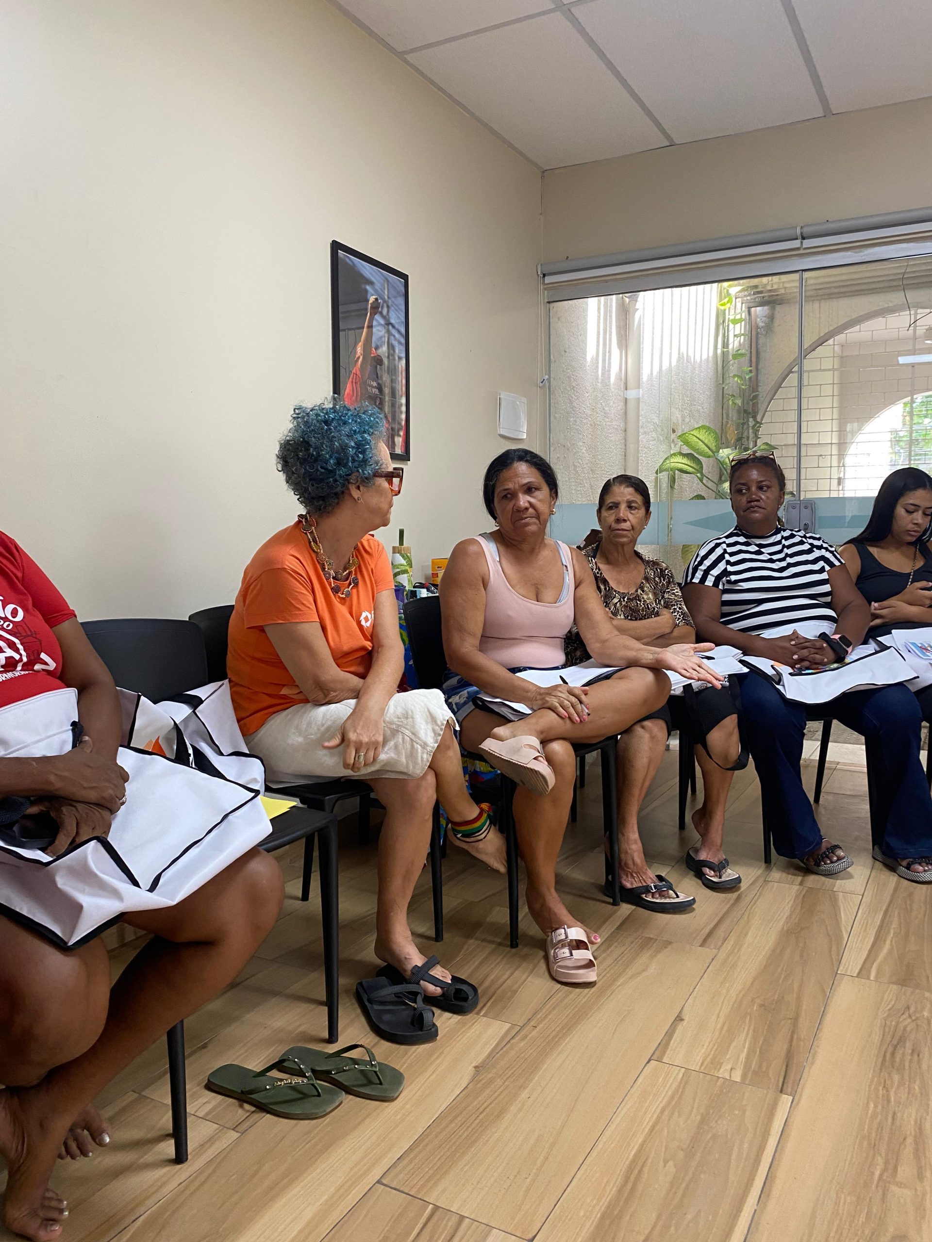As participantes relataram diversas formas de violência vivenciadas em casa ou na comunidade, incluindo assédio e importunação sexual no ambiente de trabalho, violência psicológica praticada por companheiros, abusos ocorridos em igrejas, além da violência policial promovida pelo Estado. Também mencionaram a violência exercida pelo chamado “poder paralelo”, representado pelo tráfico de drogas e pela milícia.