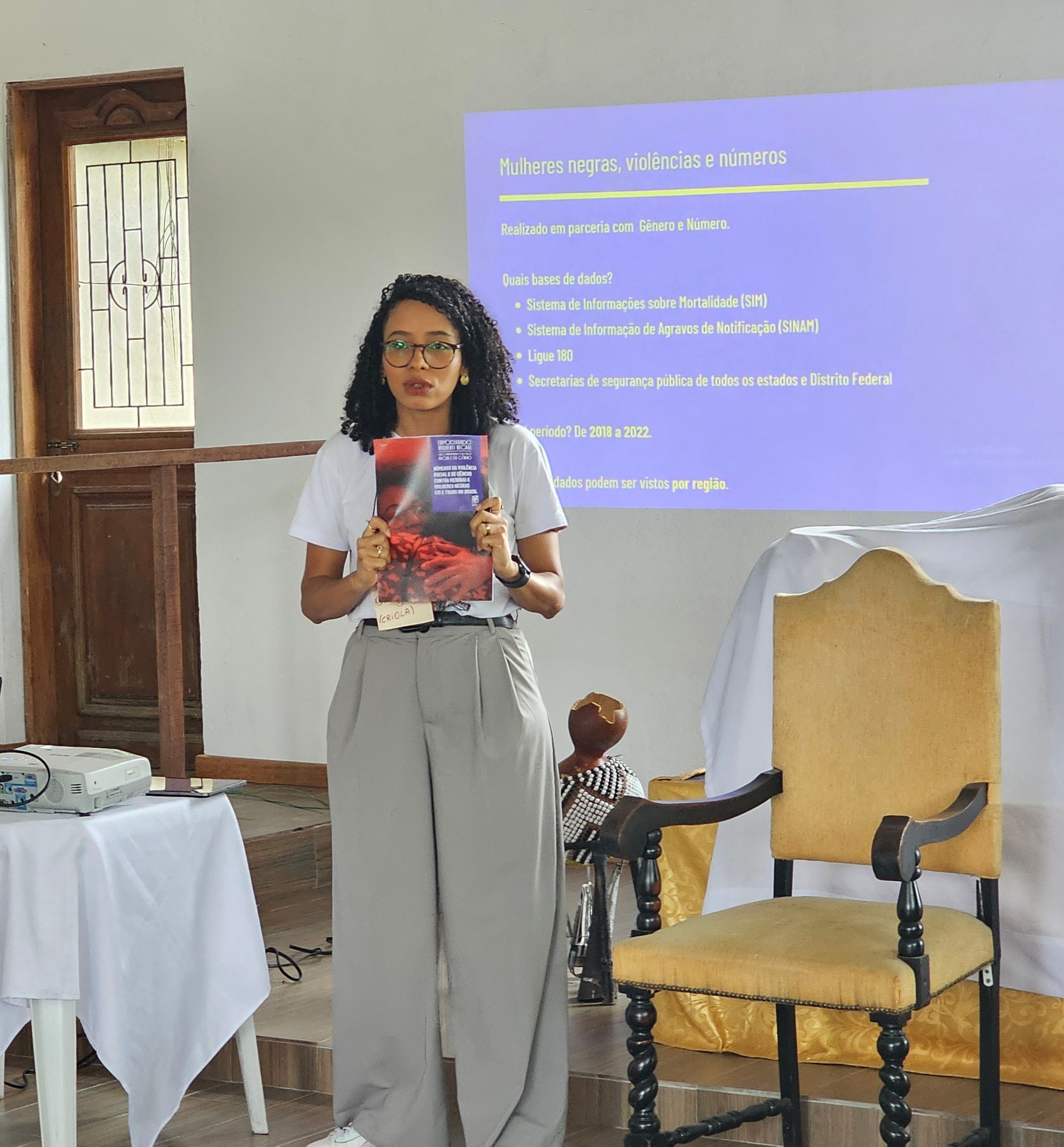 Na parte da manhã, foi convidada a advogada representante da ONG Criola, Patrícia Oliveira de Carvalho, que apresentou números da pesquisa “Empoderando Mulheres Negras para Enfrentamento à Violência Racial e de Gênero: números da violência racial e de gênero contra meninas e mulheres negras Cis e Trans no Brasil”.