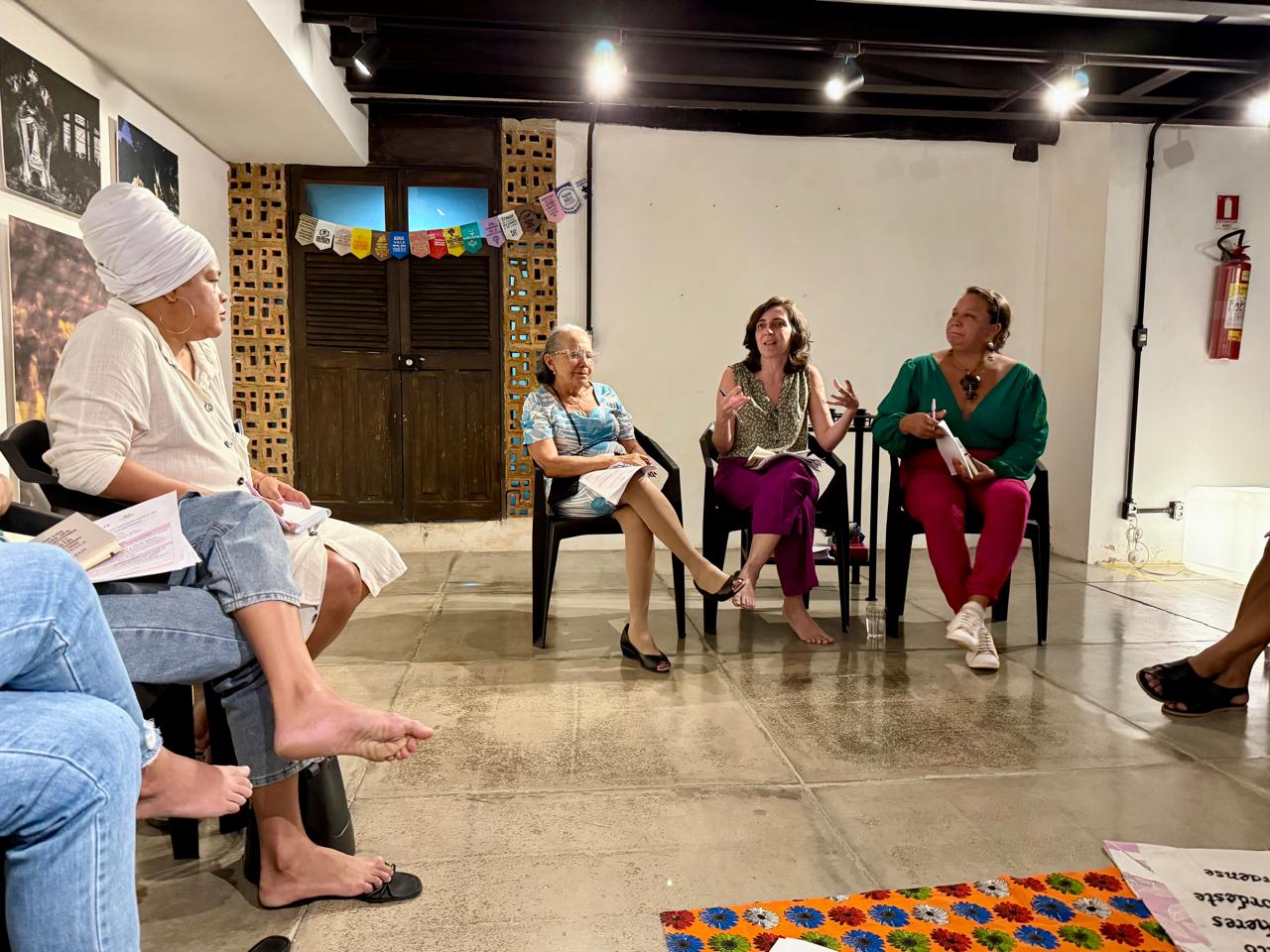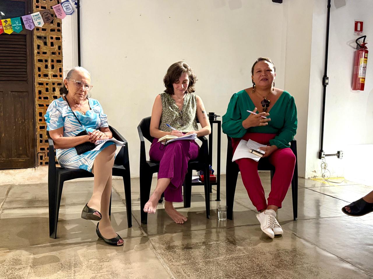 “Essa oficina foi para mim um espaço muito importante de considerar a nossa existência, e não só a resistência, porque aqui a gente vai ser ouvida de verdade, não apenas um ambiente somente de dor, peso, mas um ambiente para nos fortalecer. Eu espero que esse seja um espaço de quebra de misoginia, de quebra da rivalidade feminina que é uma coisa que incomoda, mas que continua, um espaço que a gente possa se abrir de verdade, e ter o poder de falar sem ser vigiada”, refletiu a participante Débora Santos.
